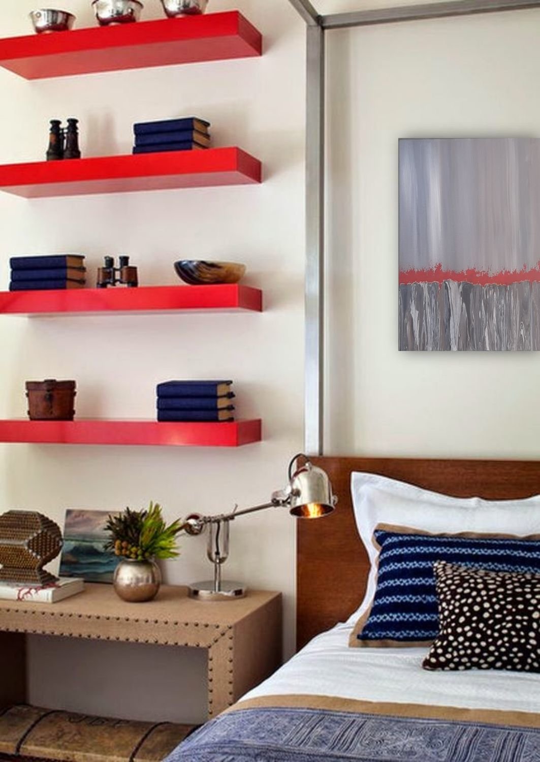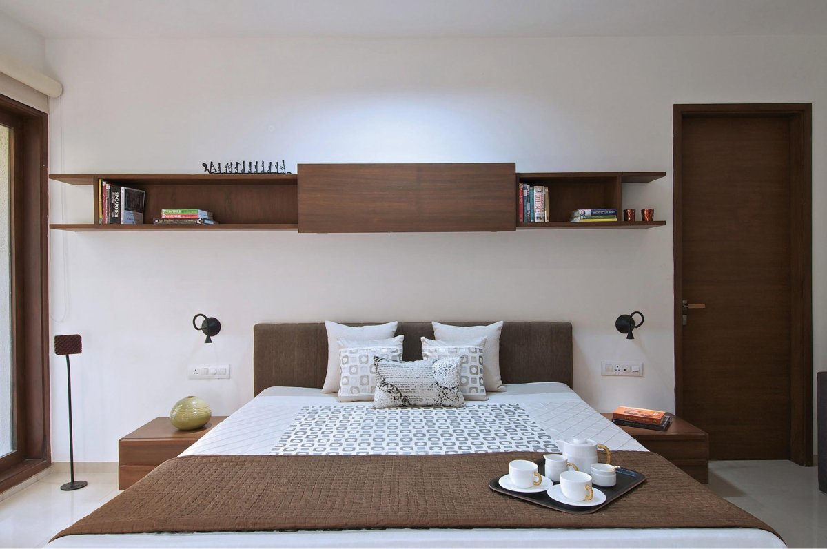 Навесные полки над кроватью в спальне