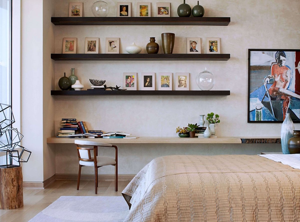 Навесные полки на стену в спальню