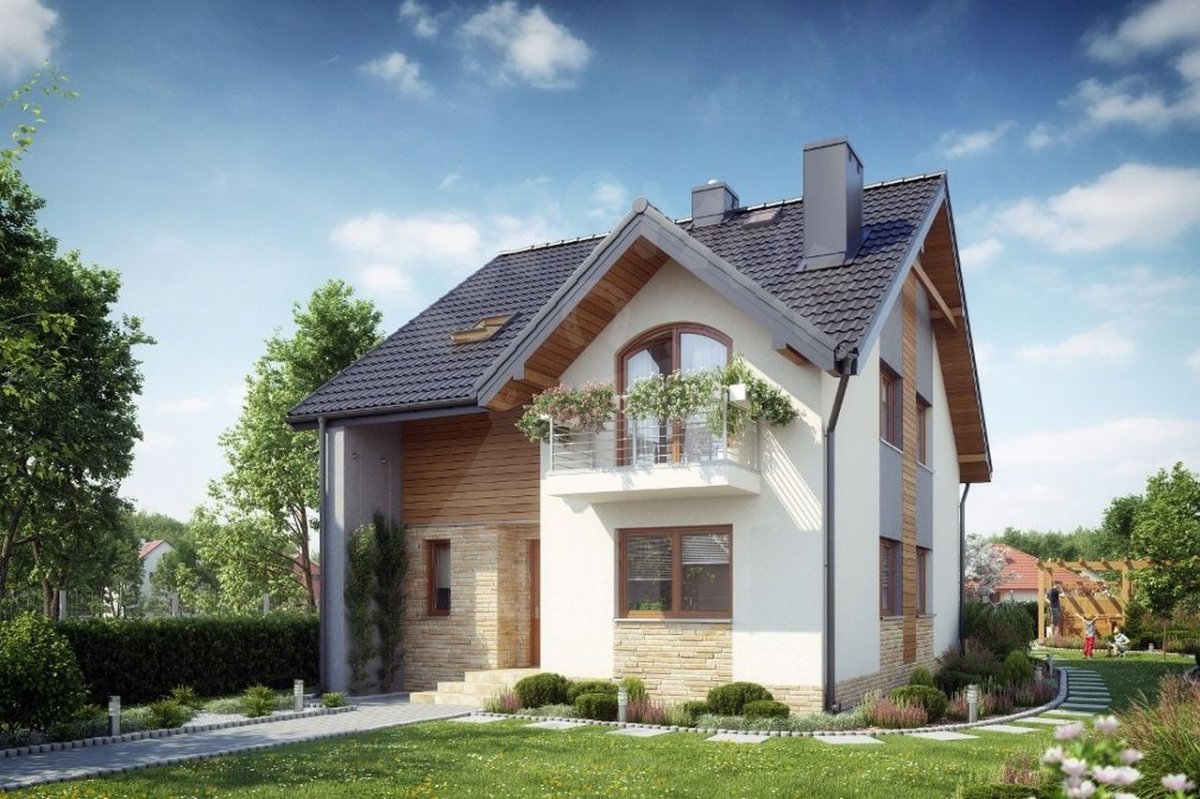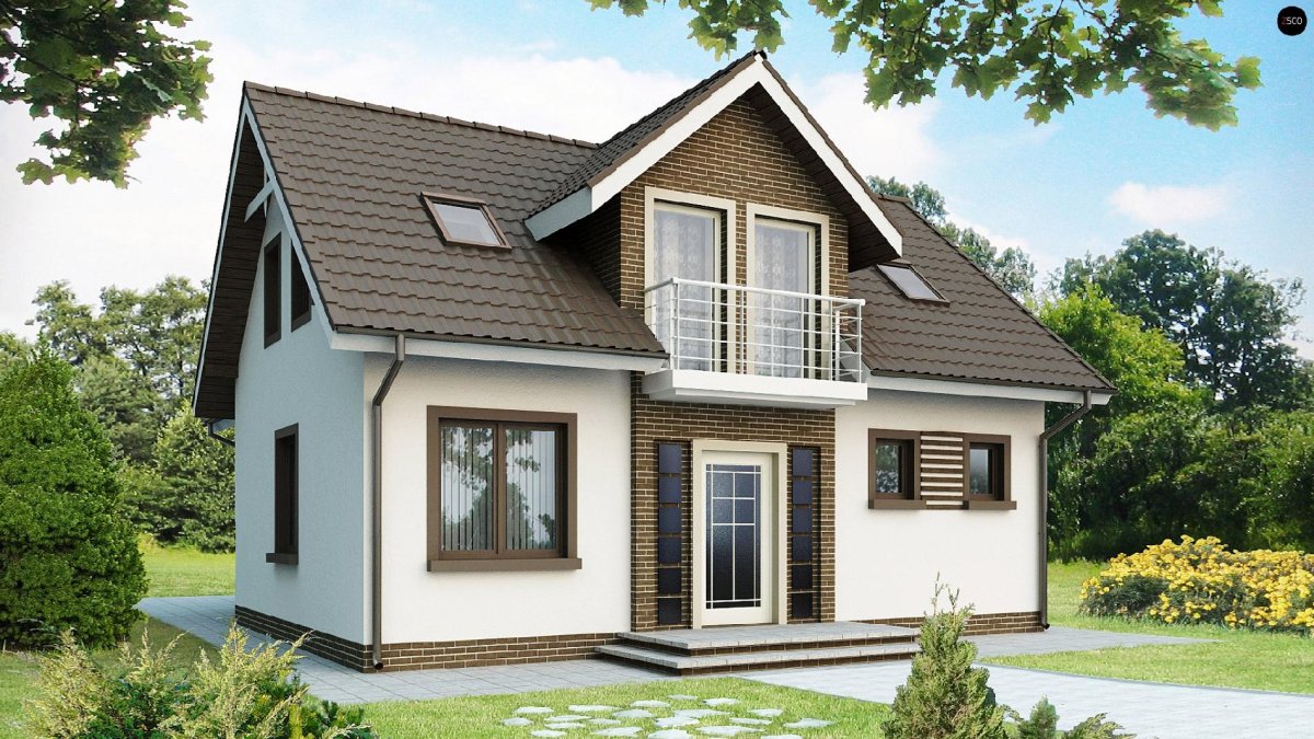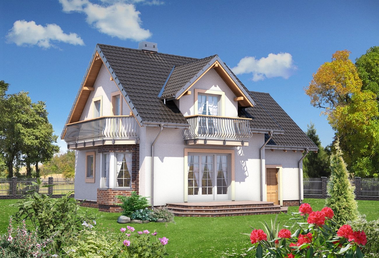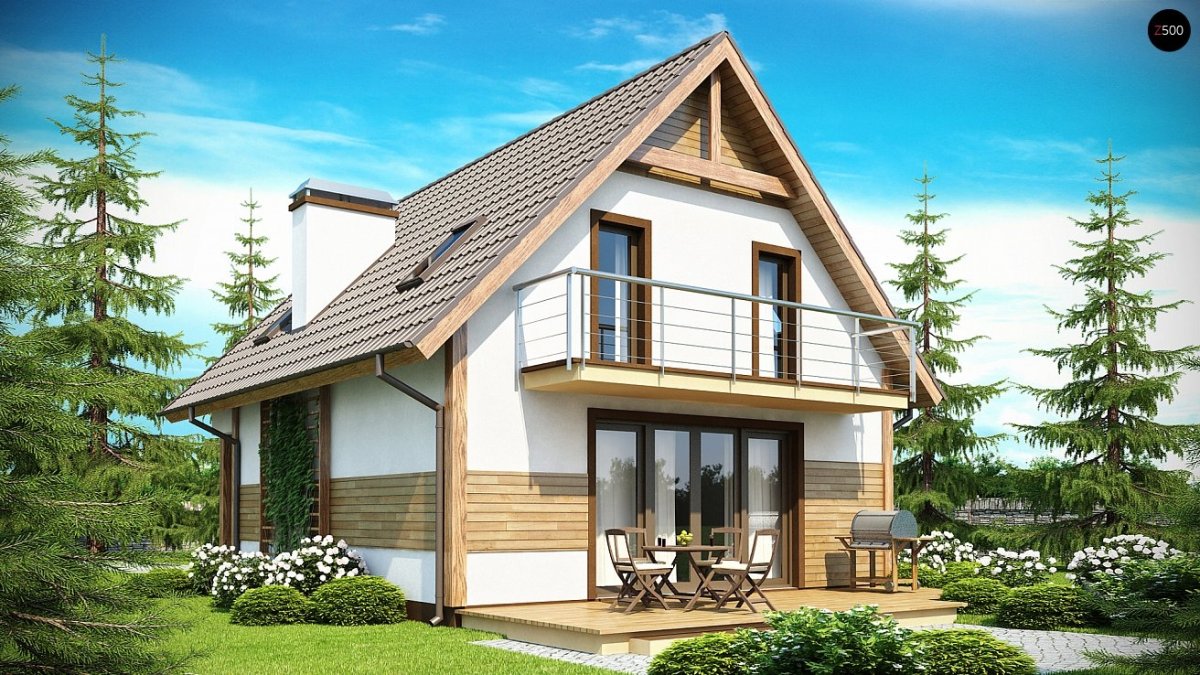 Дом с мансардой и балконом небольшой