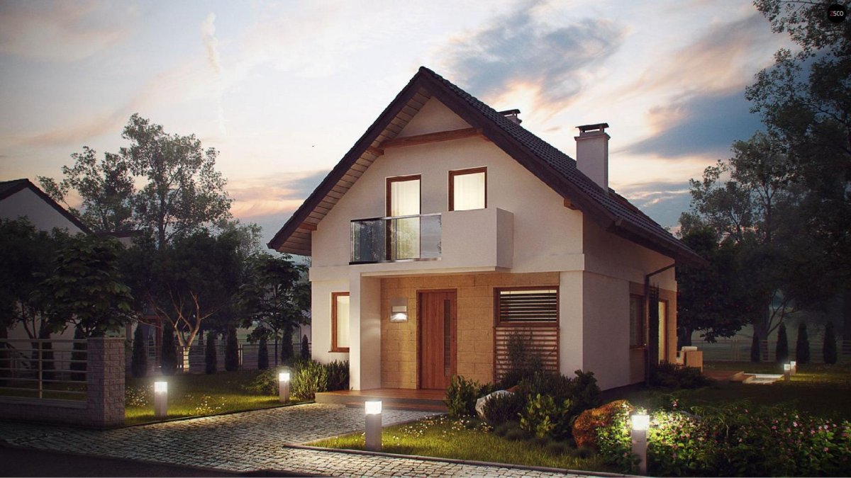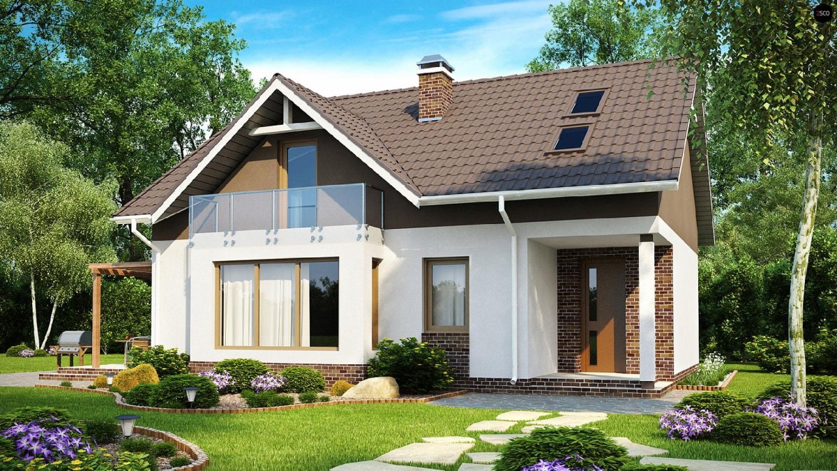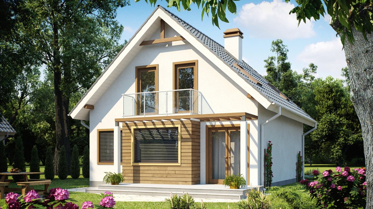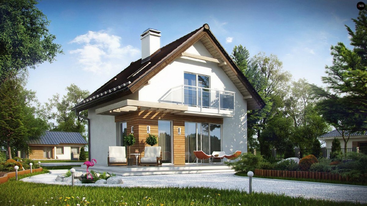 Дом с мансардой и балконом небольшой