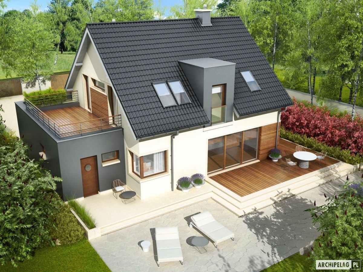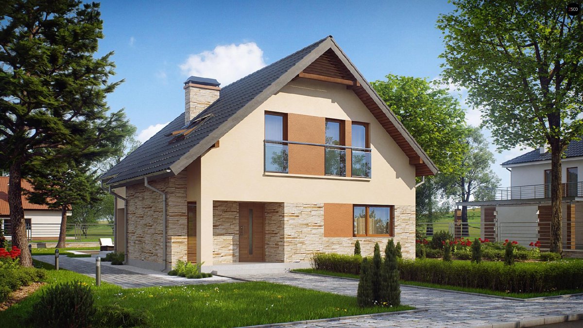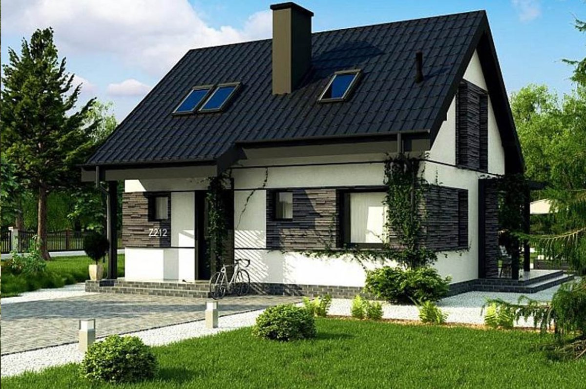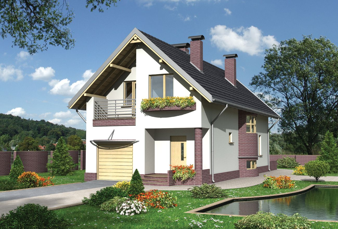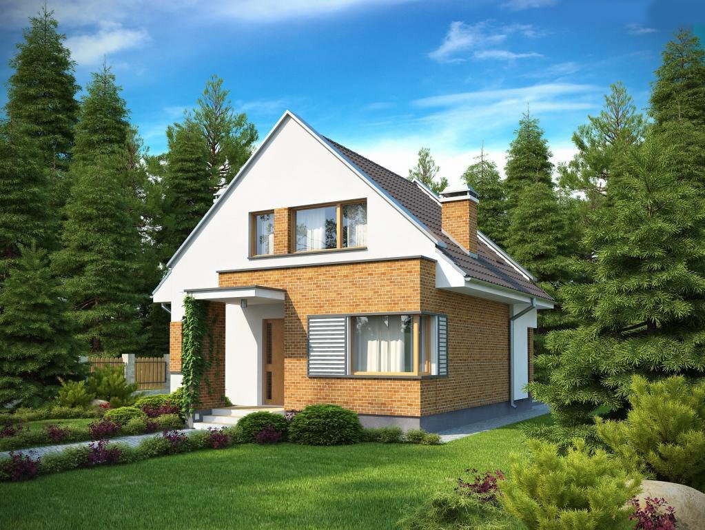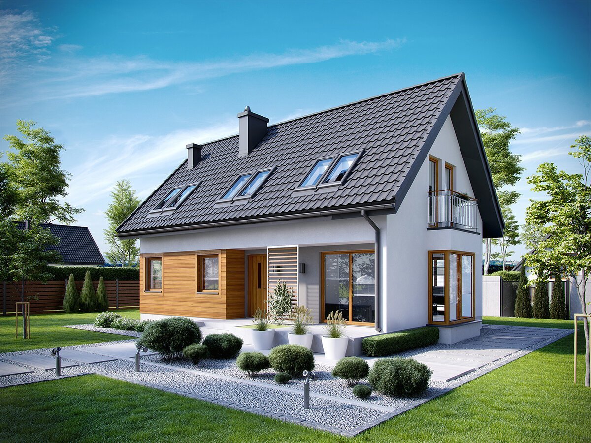 Небольшой дом с мансардой и ландшафтом