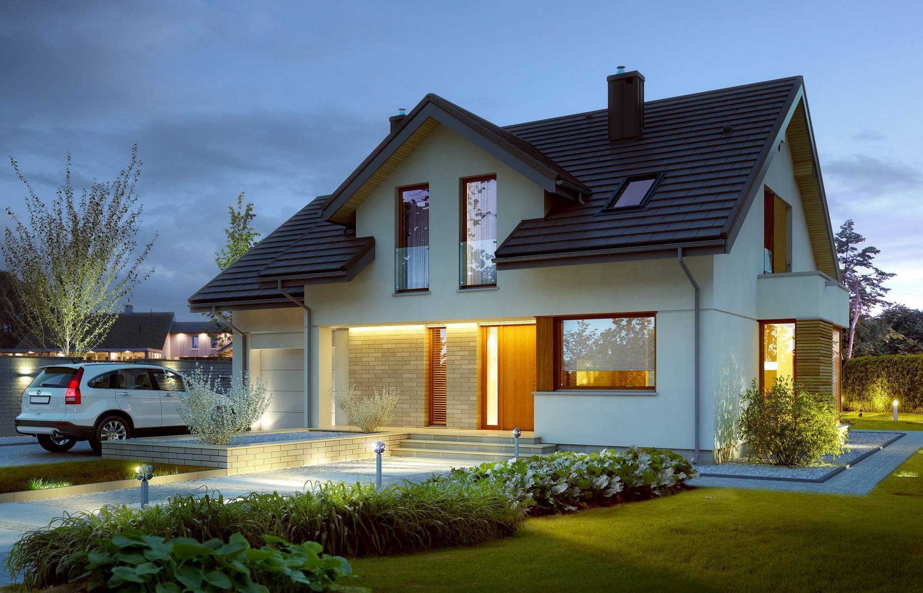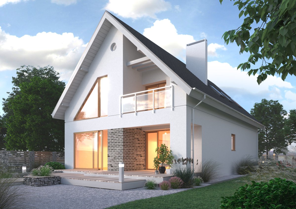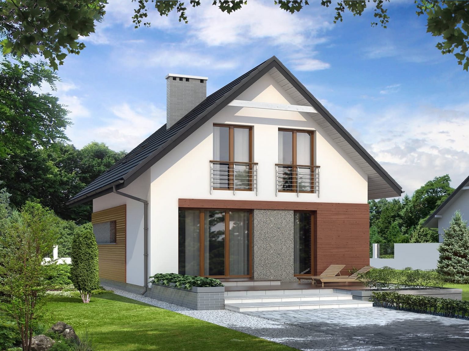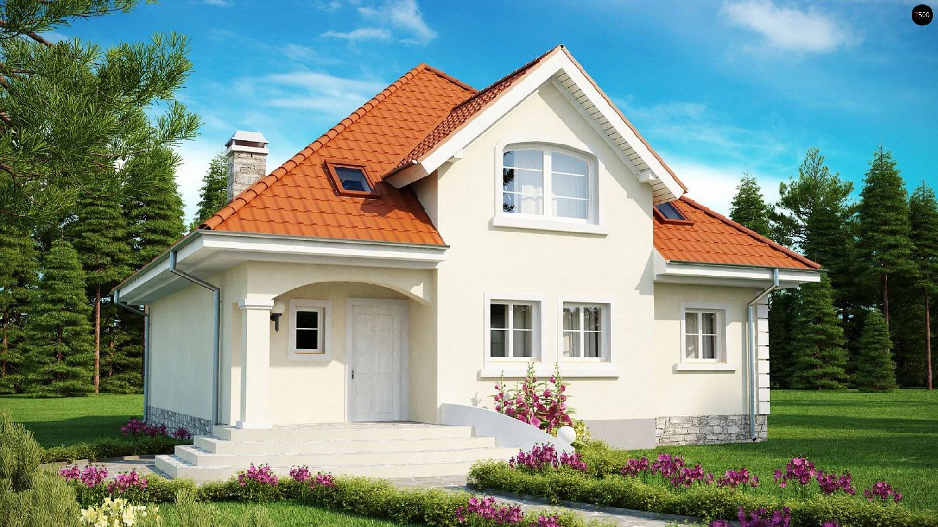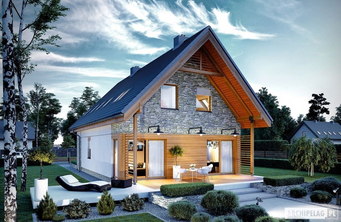Небольшой дом с мансардой и ландшафтом