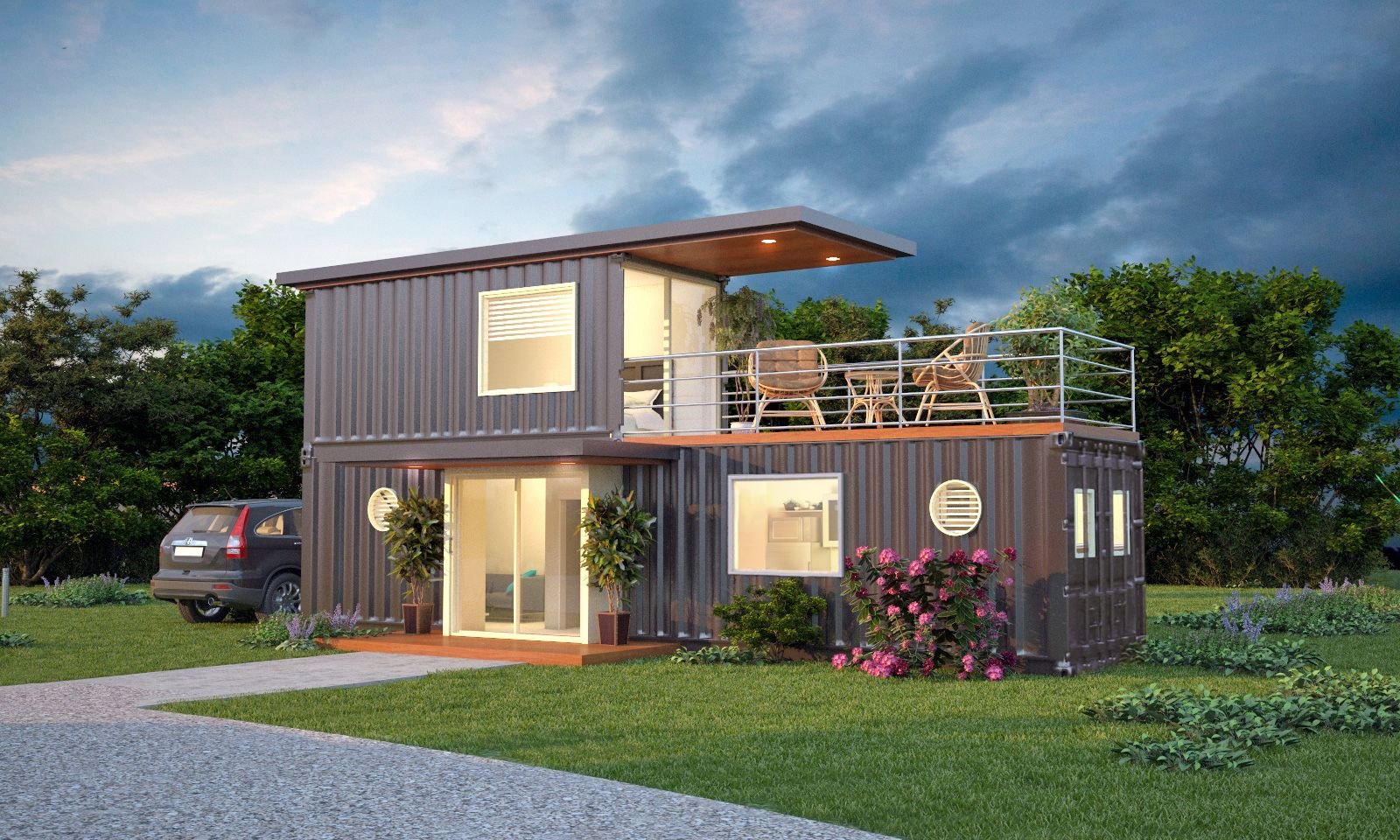 Дом из 2 морских контейнеров 40 футовых на склоне