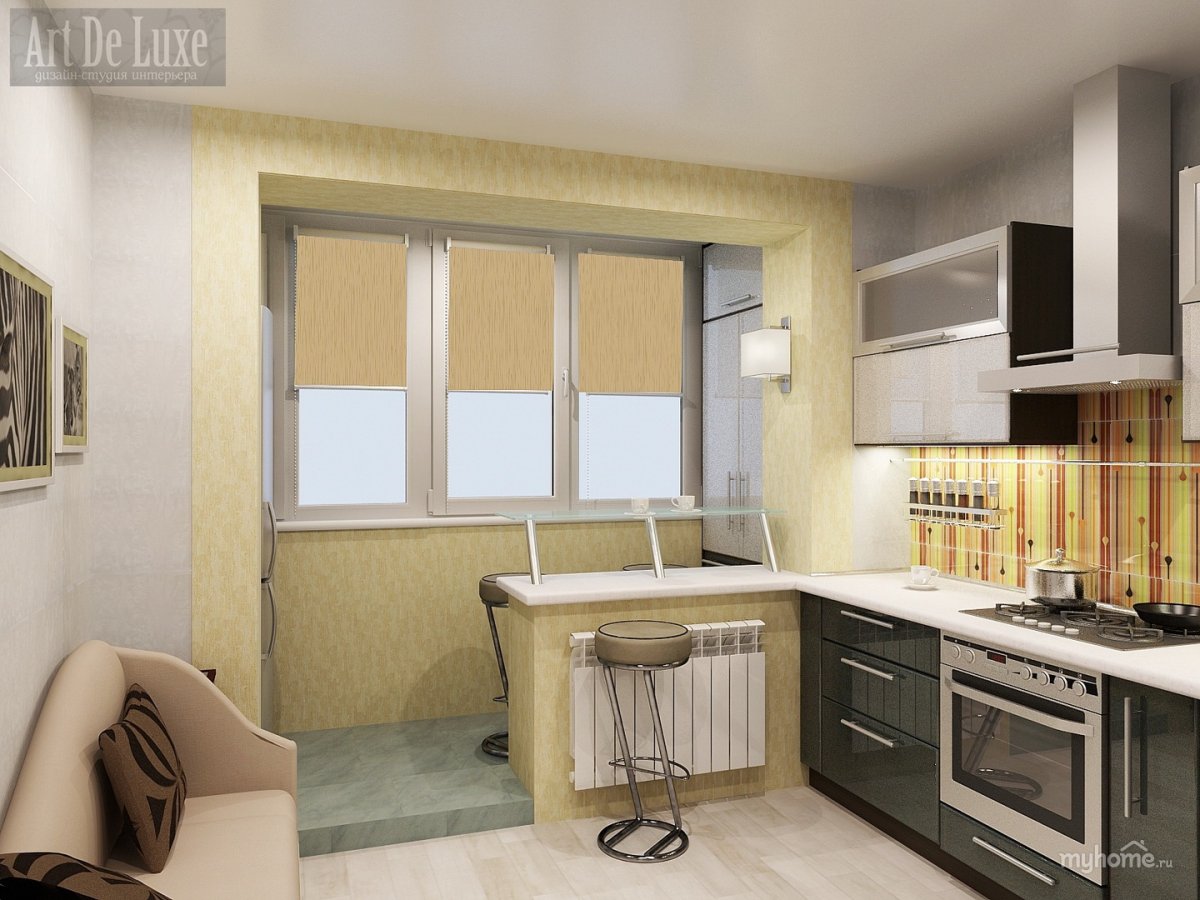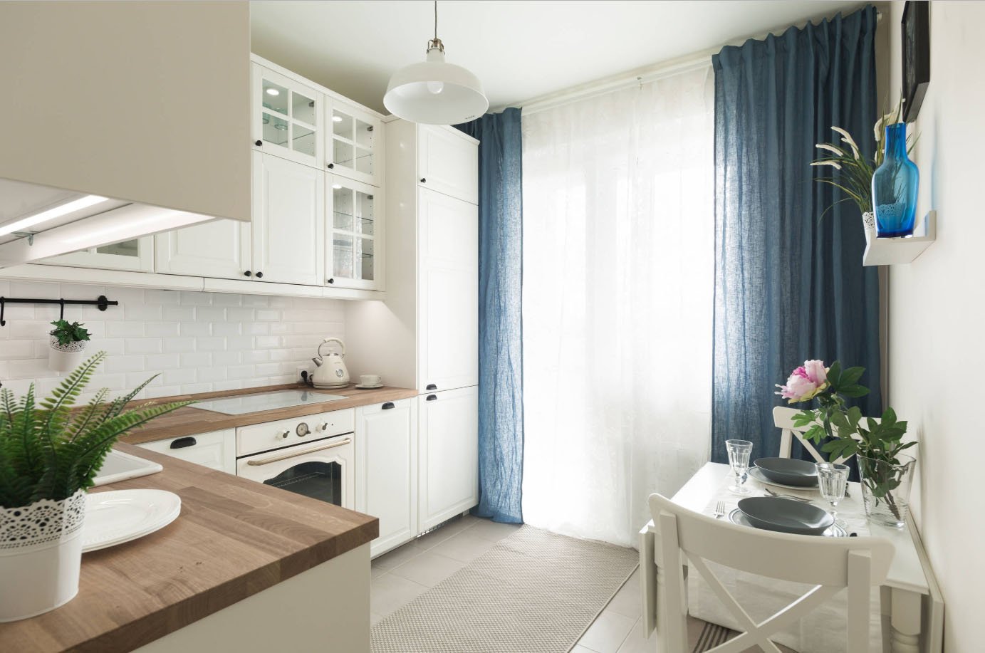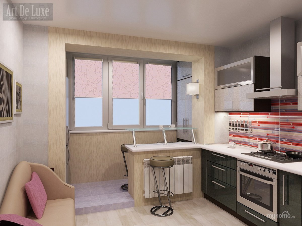 Интерьер кухни 9 кв.м с балконом в панельном доме
