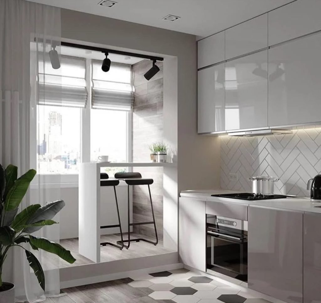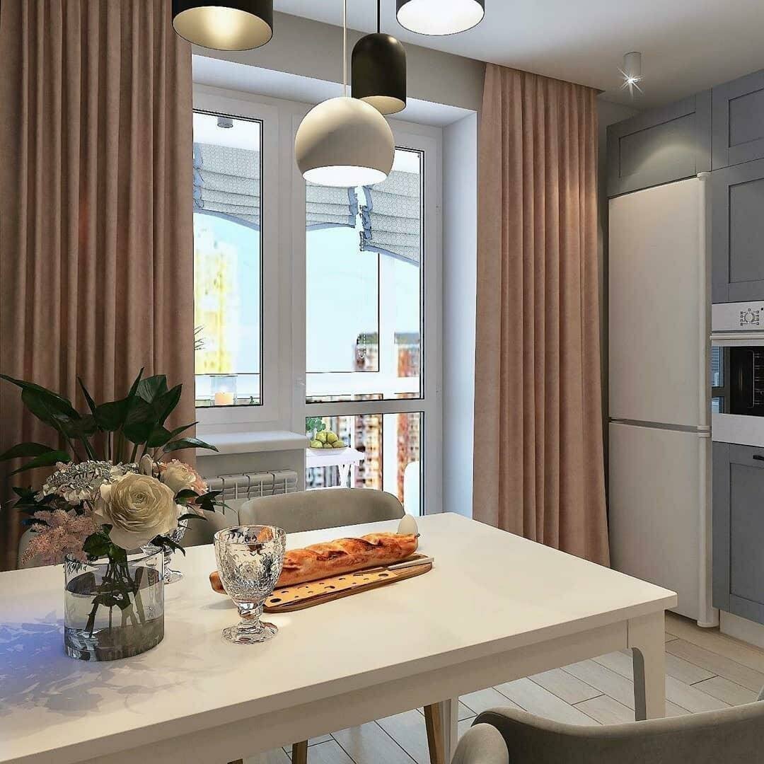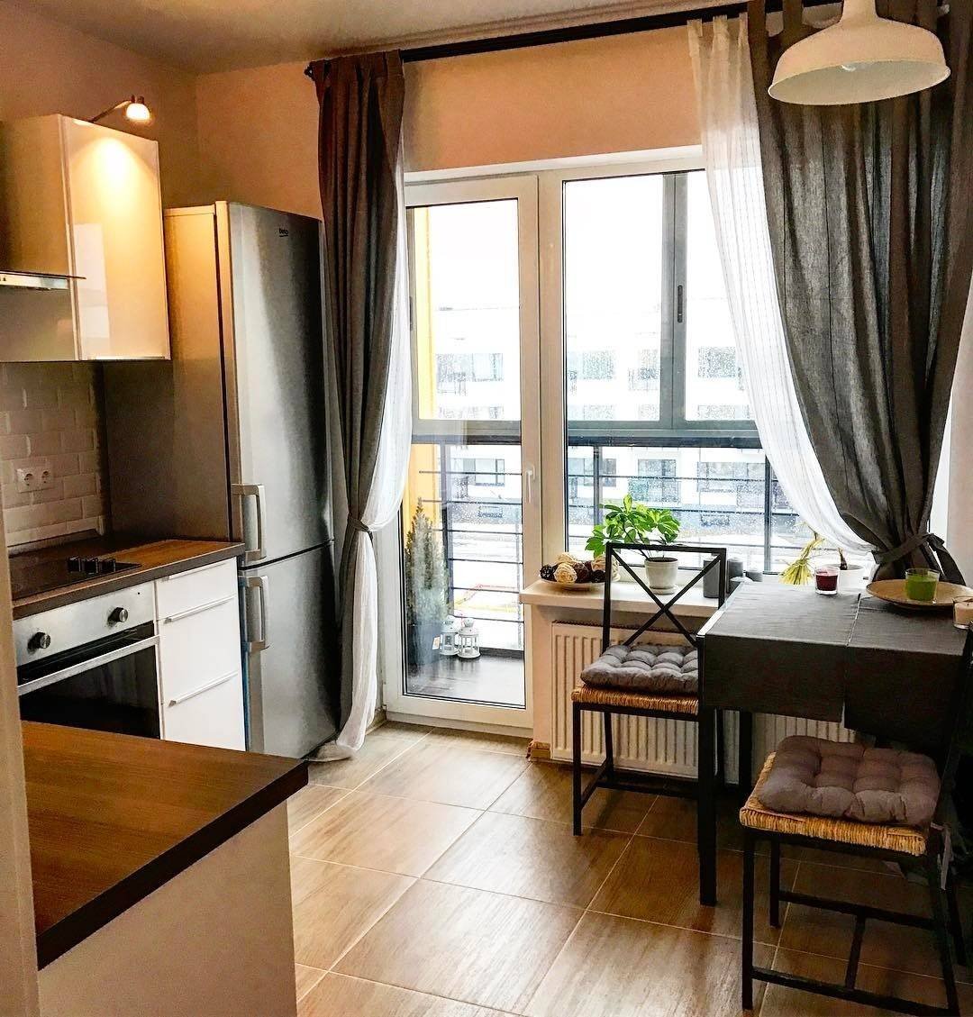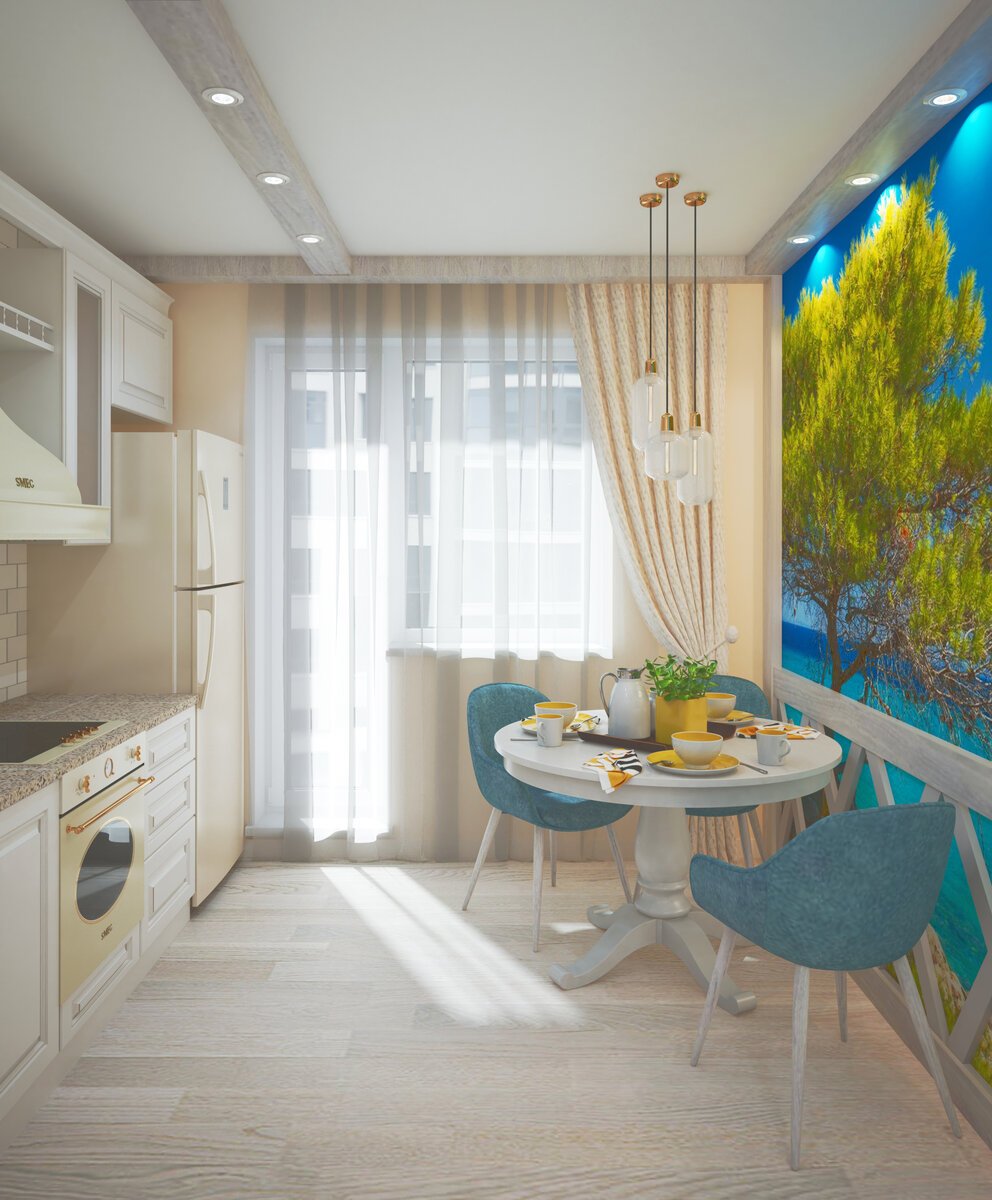 Интерьер кухни 9 кв.м с балконом в панельном доме