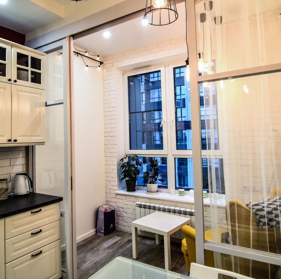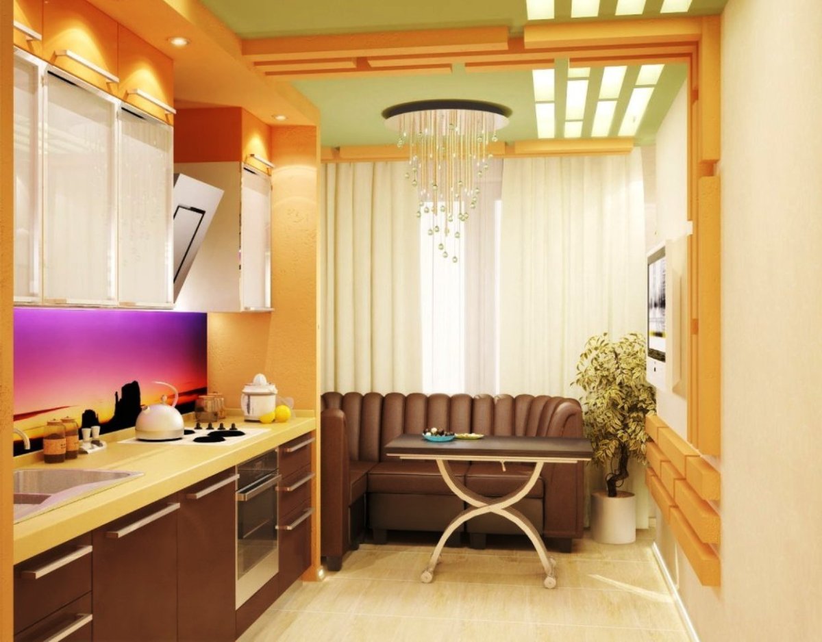 Интерьер кухни 9м2 с выходом на балкон с диваном