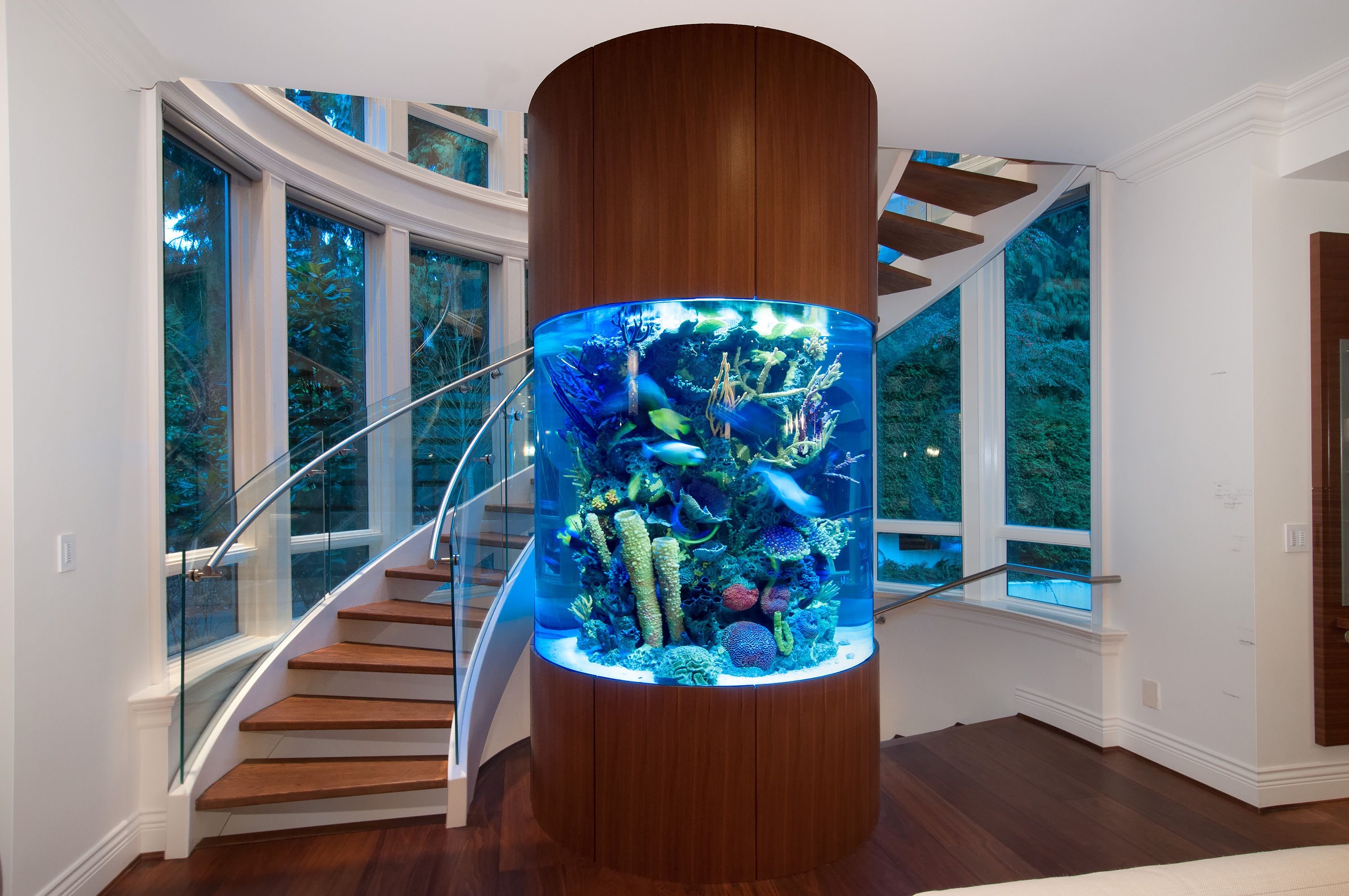 Аквариум в интерьере лестницы