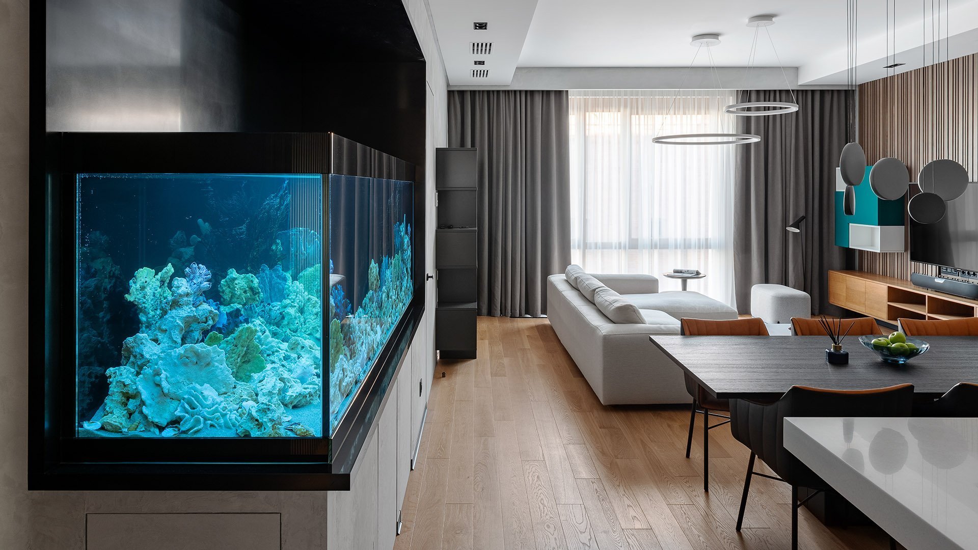 Аквариум между кухней и гостиной дизайн