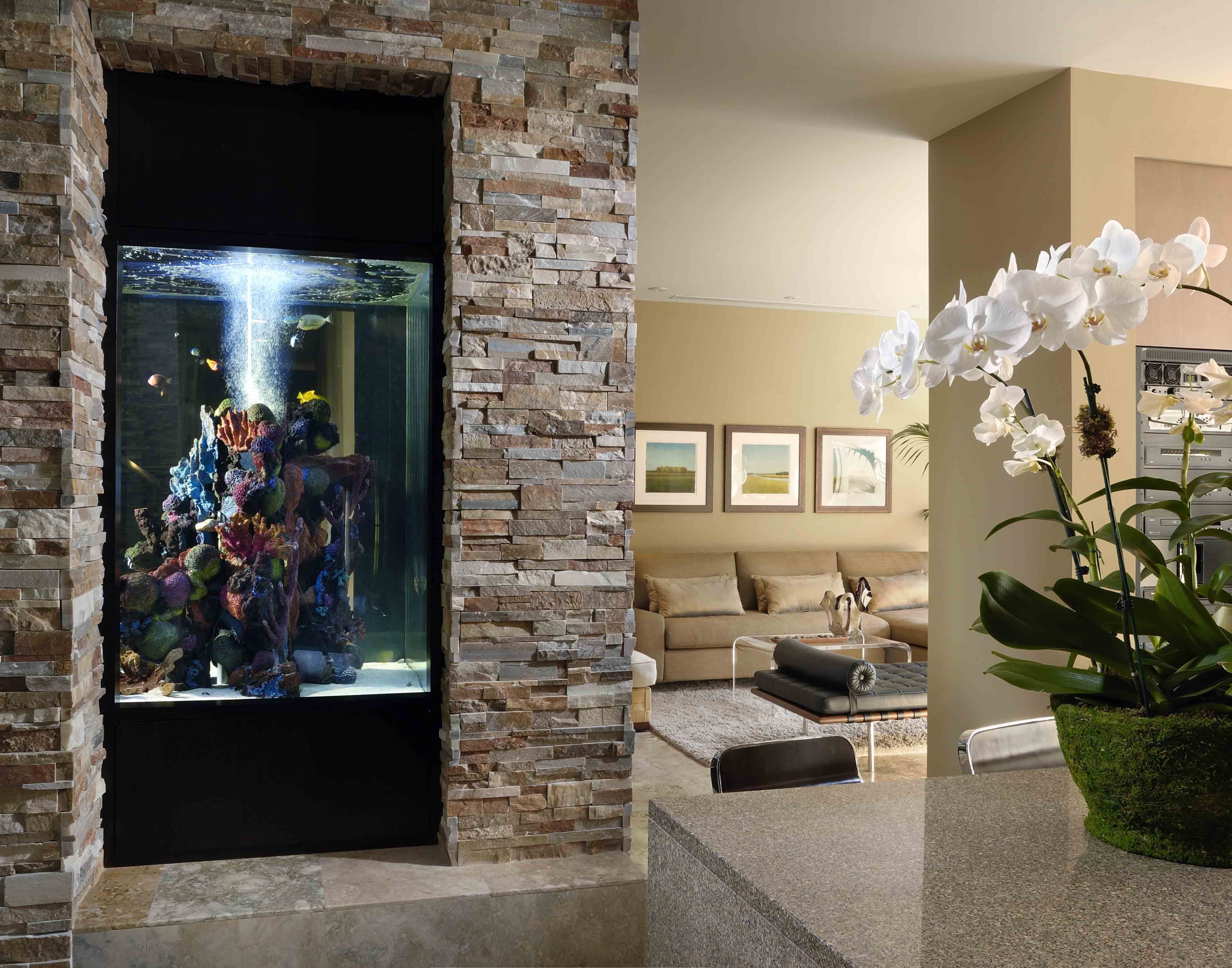 Стена с аквариумом в интерьере