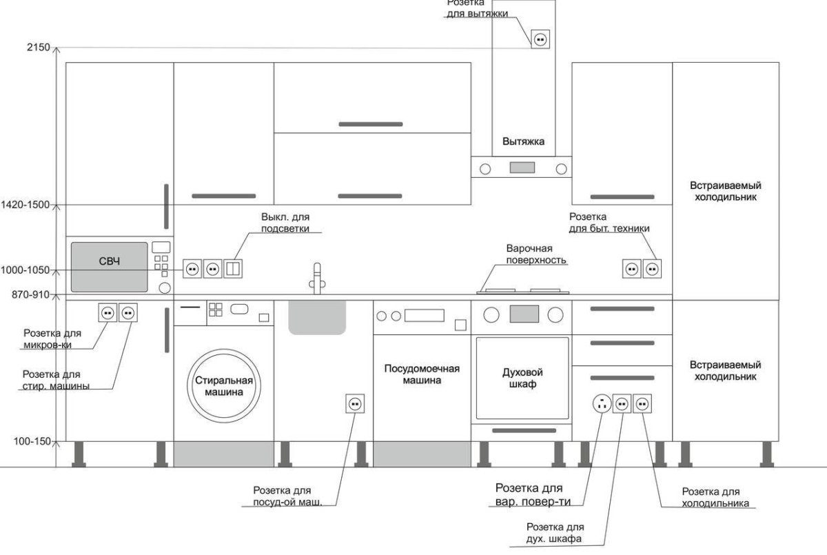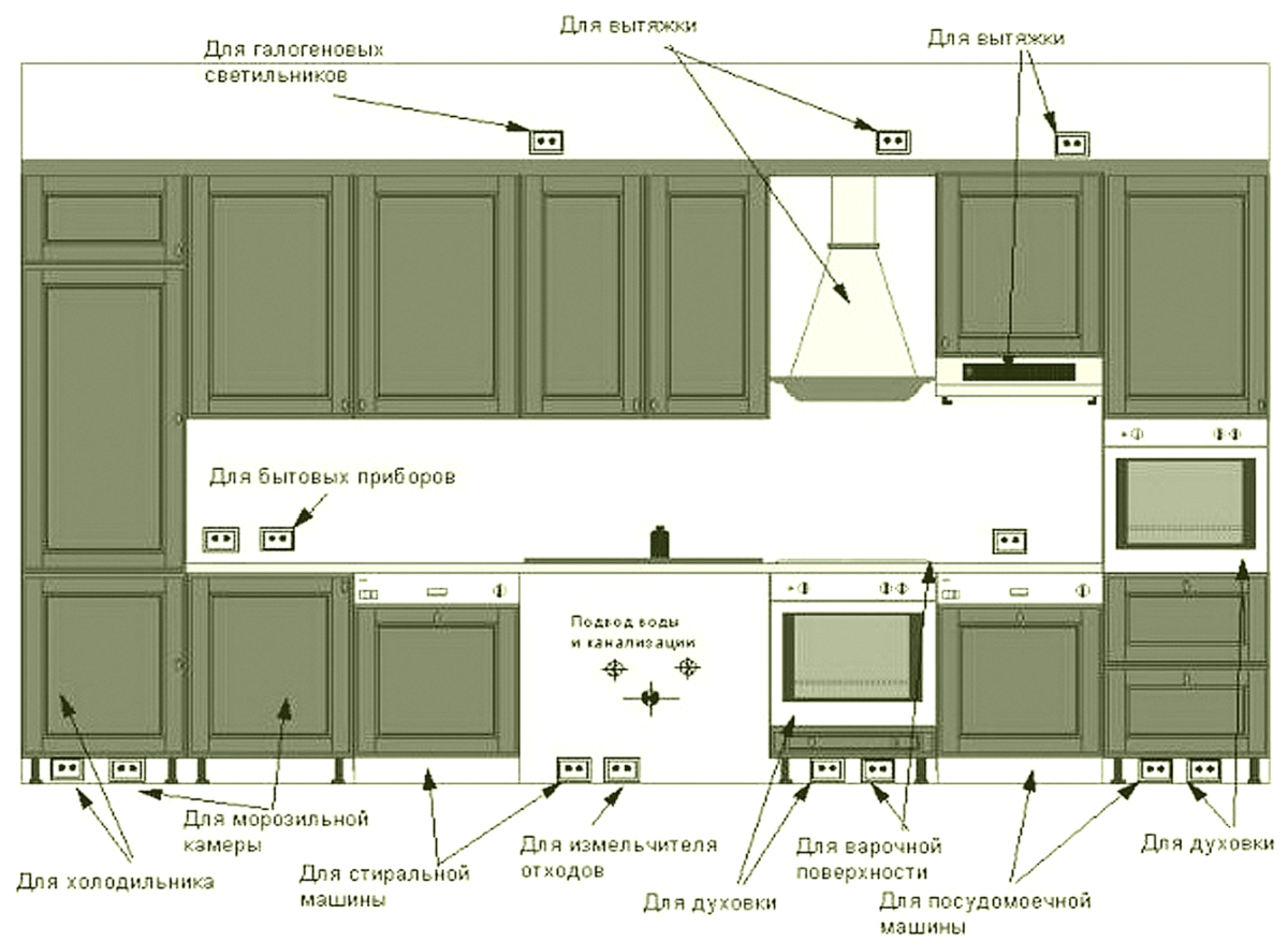 Как установить розетки на кухне под встраиваемую технику для кухни