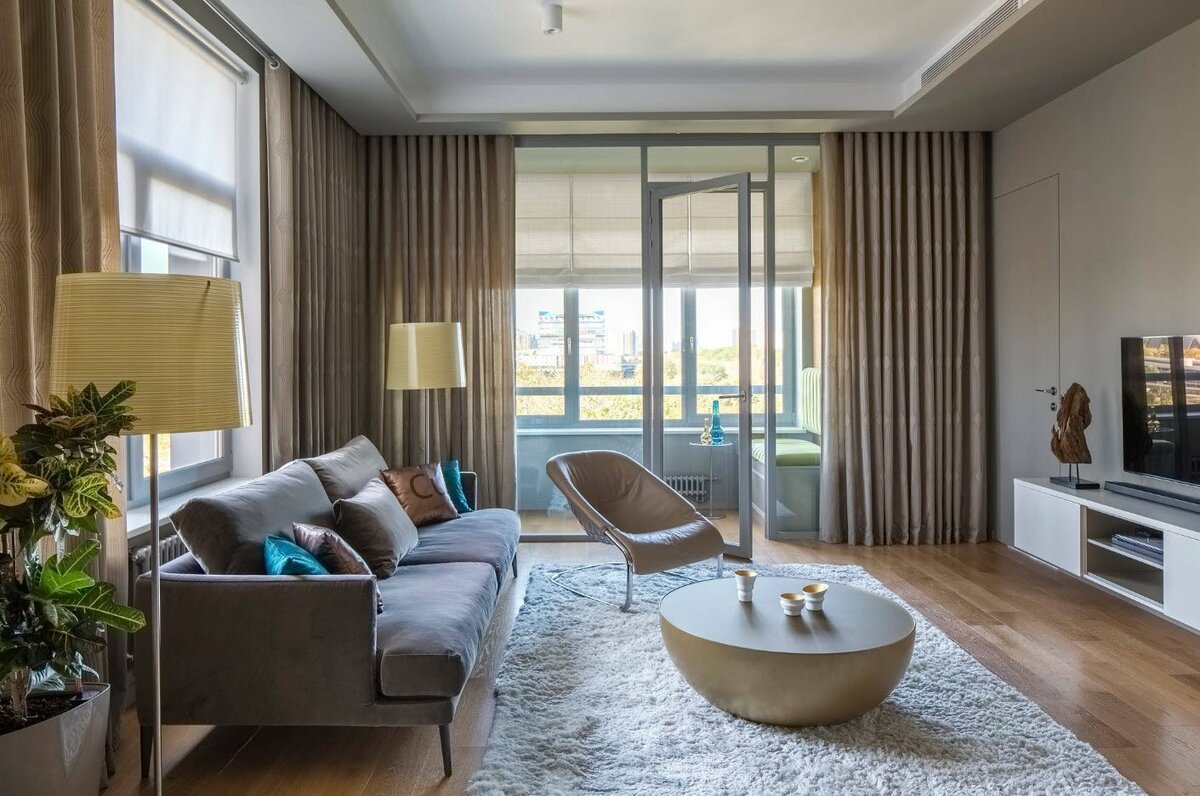 Шторы для гостиной с балконом