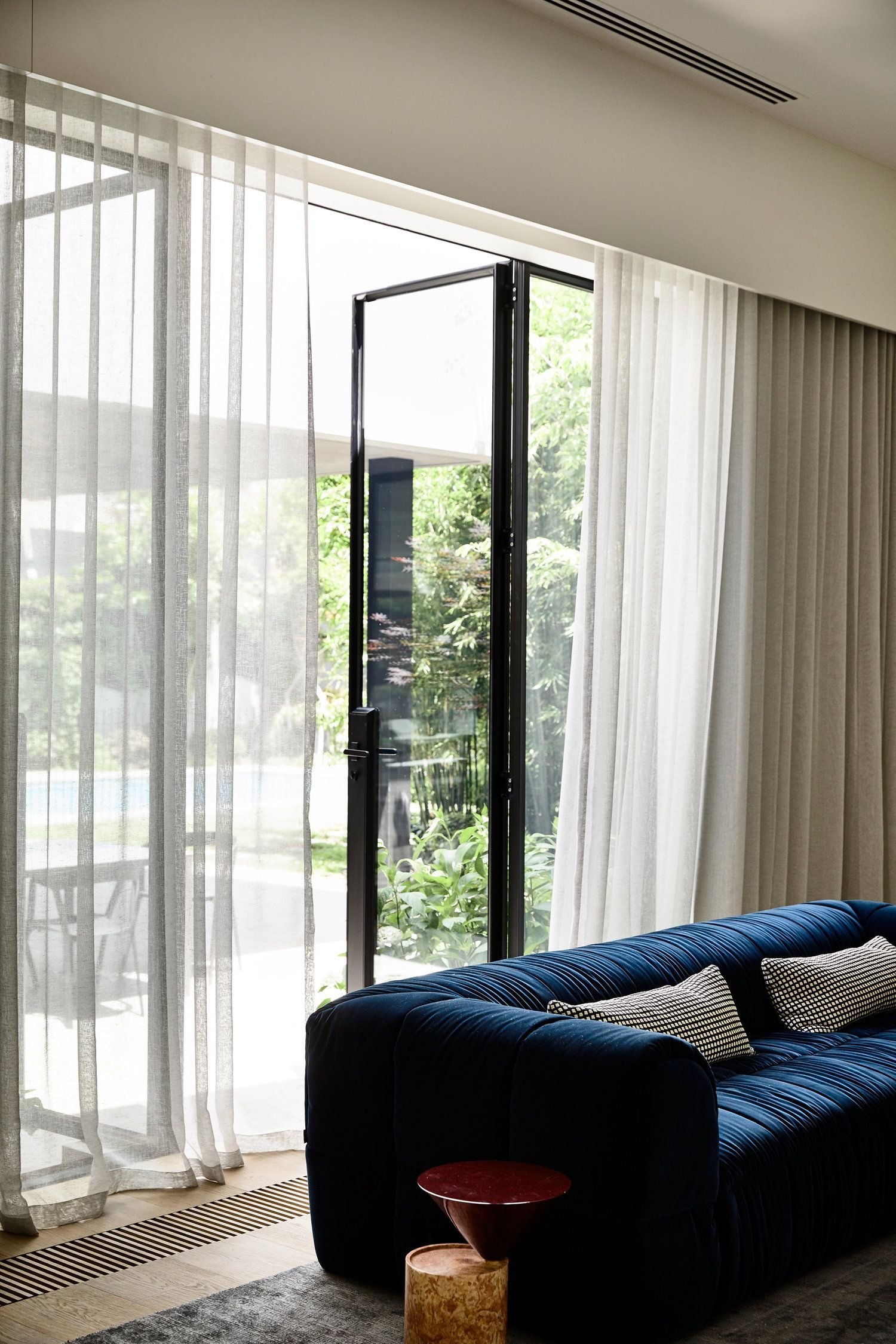Шторы на панорамные окна в гостиной