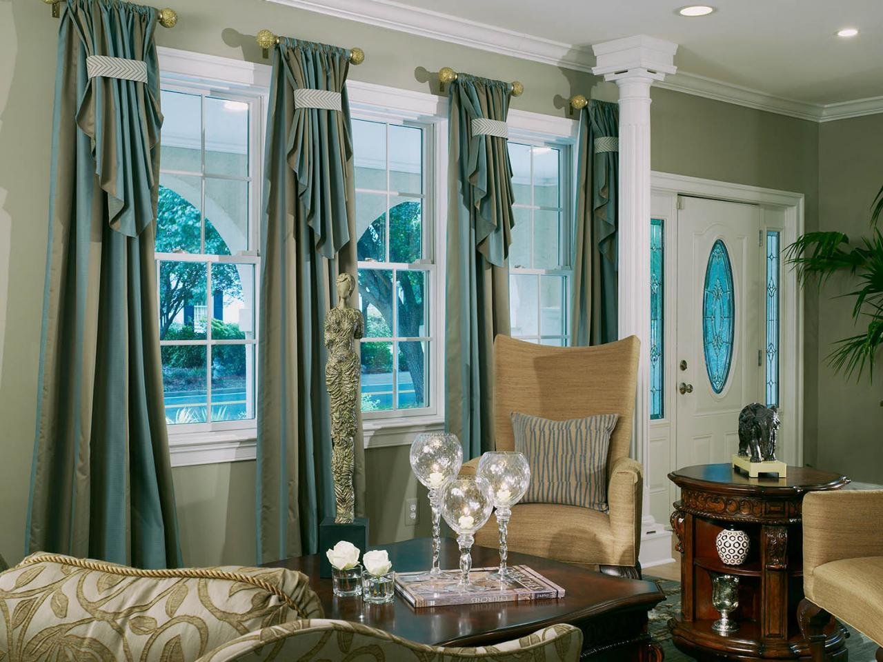 Варианты штор с витражным окном фото