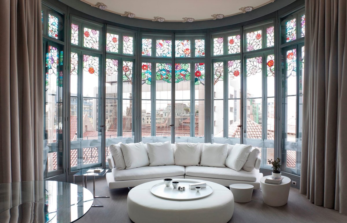 Гостиная с витражными окнами