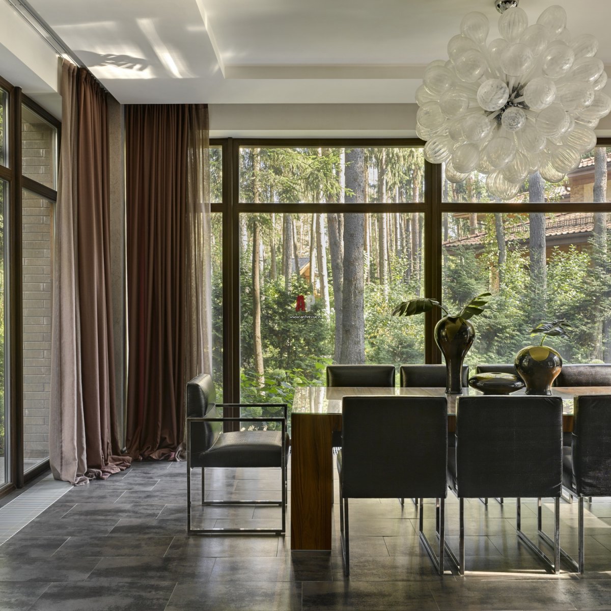 Гостиная столовая с панорамными окнами