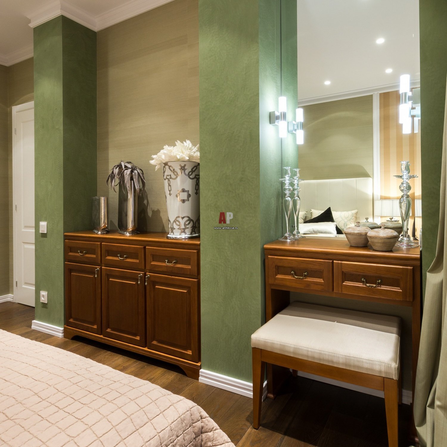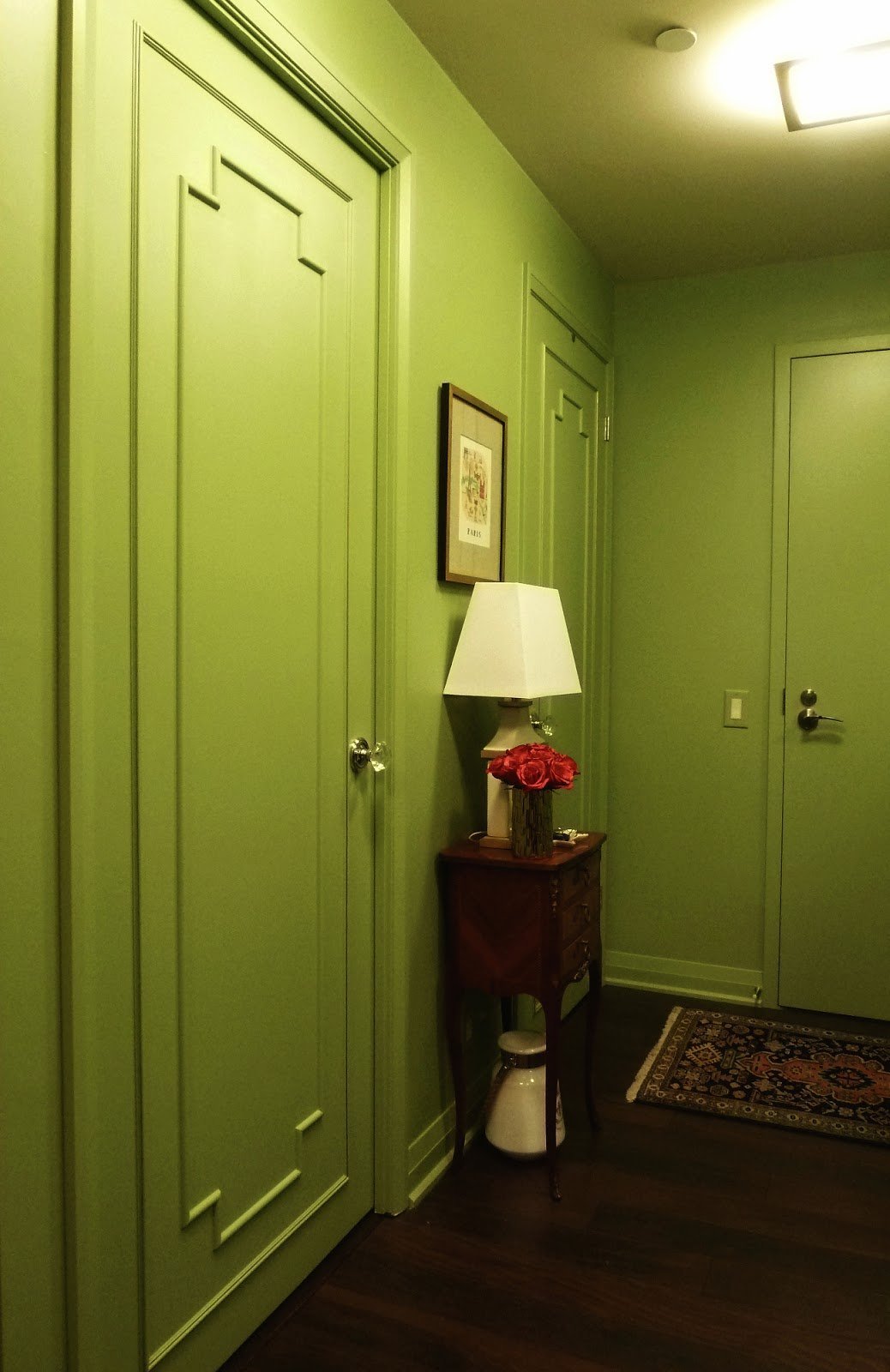 Оливковые стены в коридоре