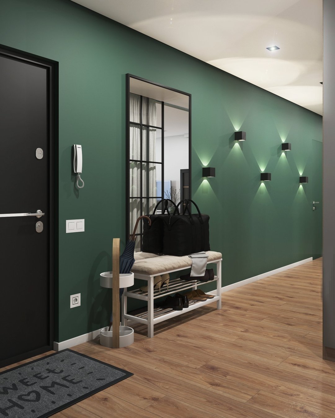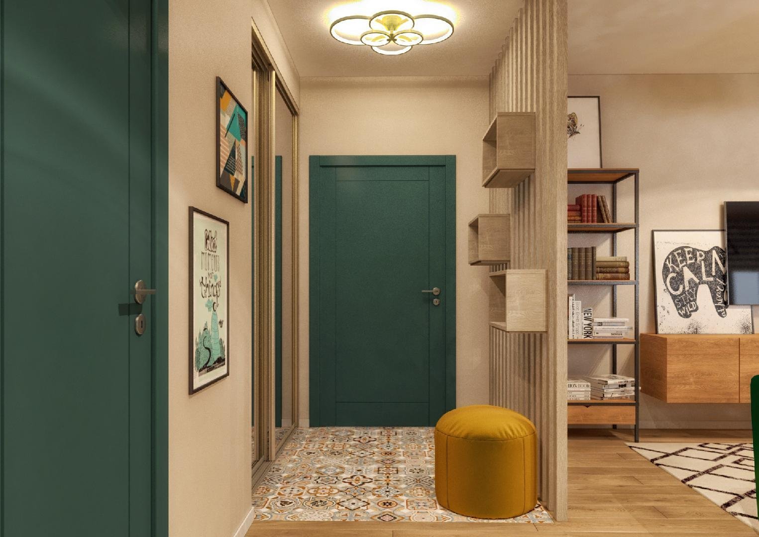 Прихожая с зелеными акцентами