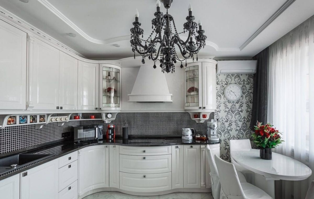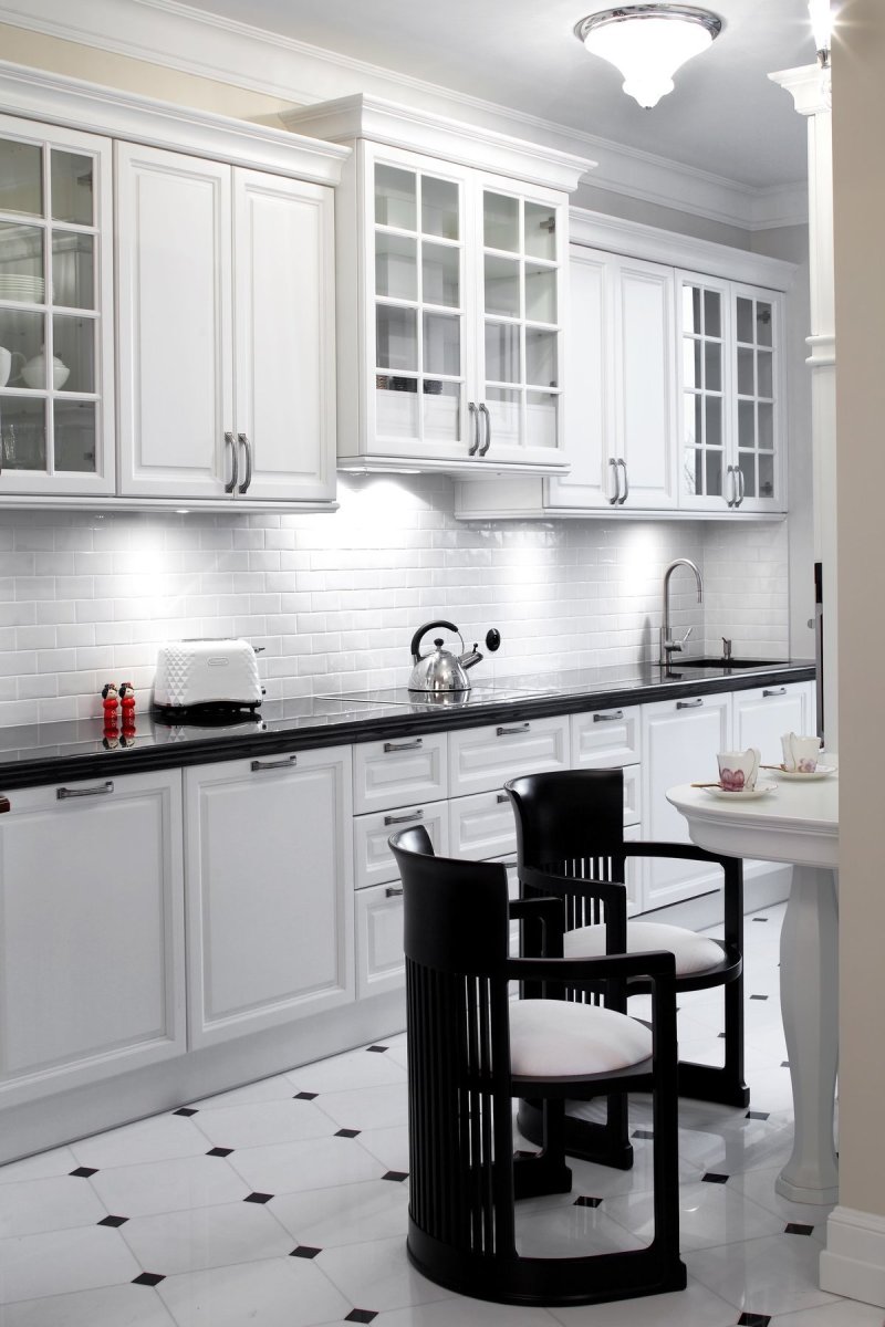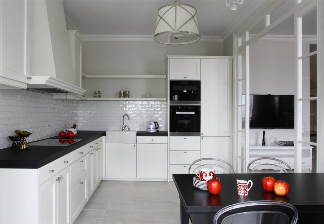 Классика кухня белая с темной столешницей лучшие интерьеры