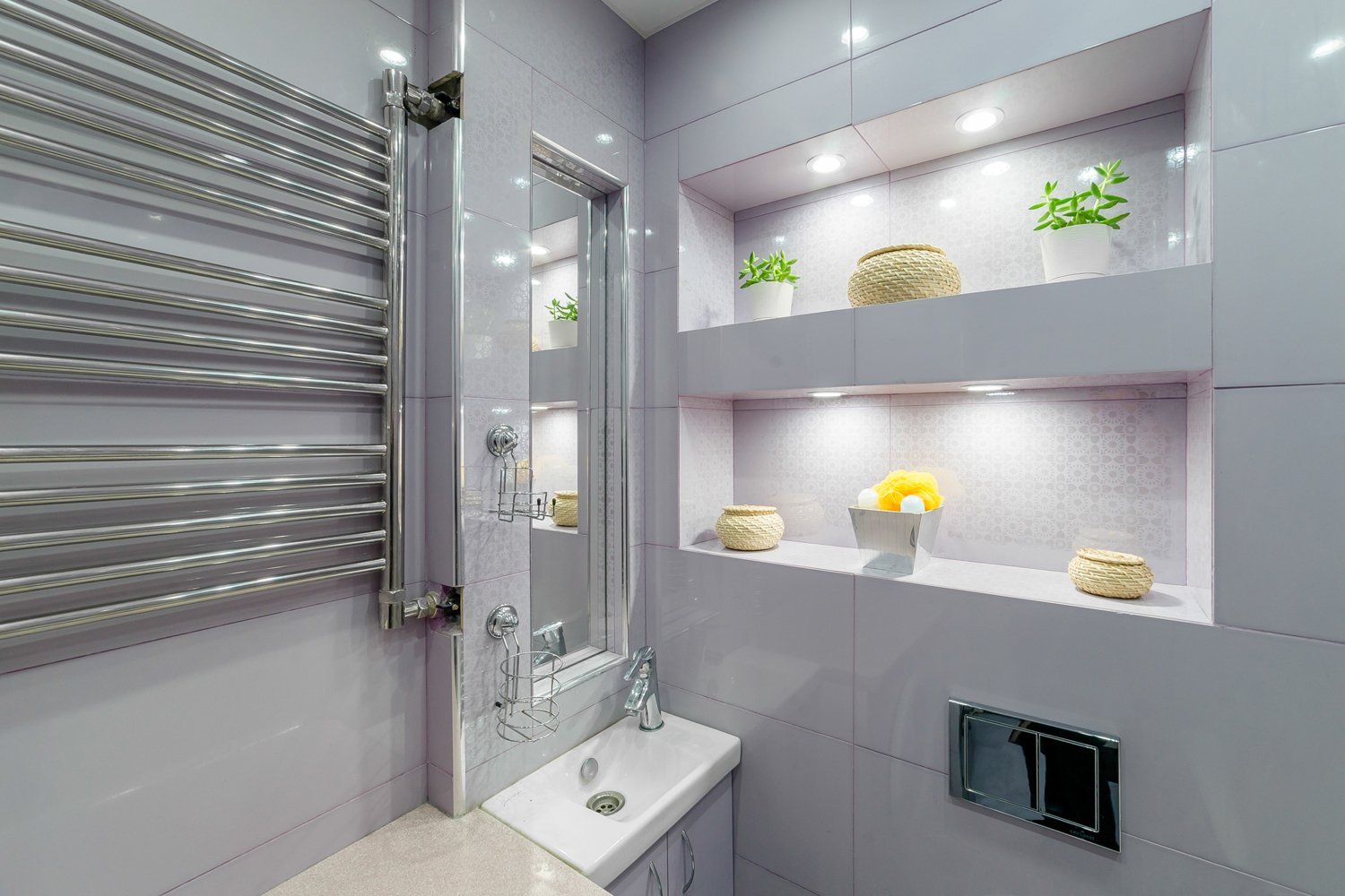 Встроенные полочки в ванной комнате