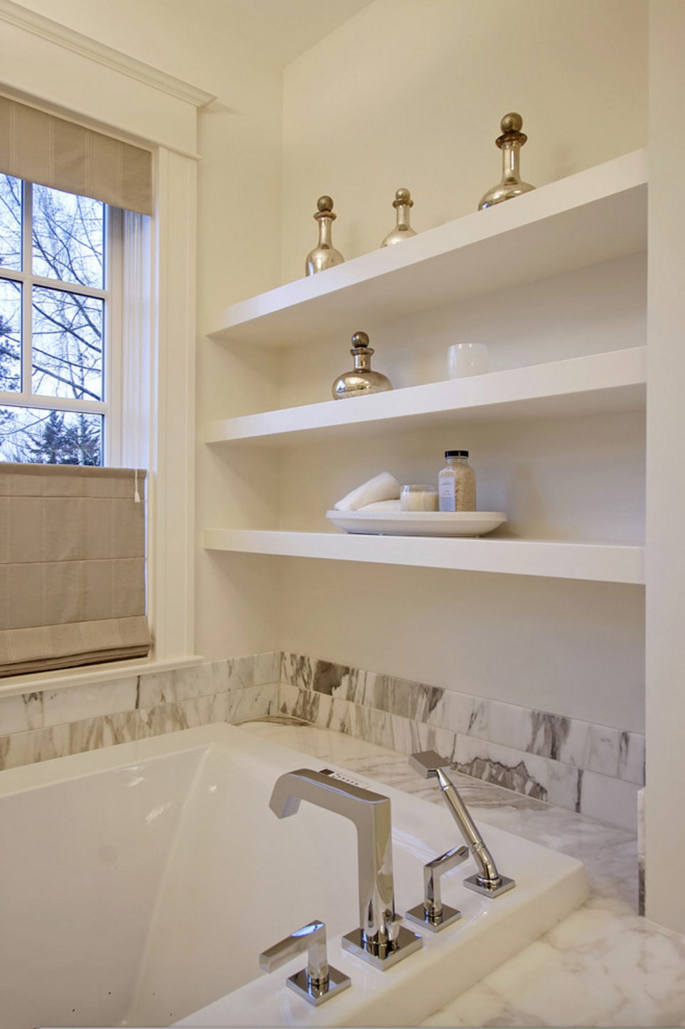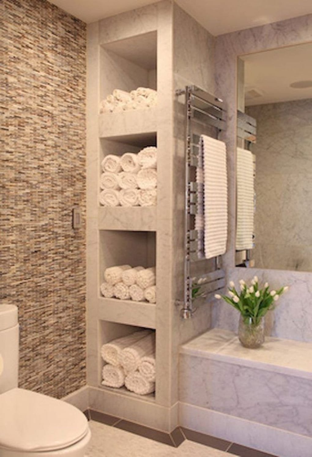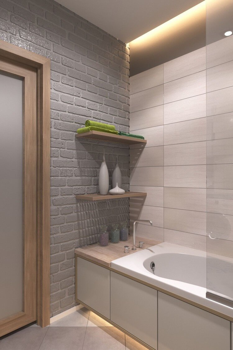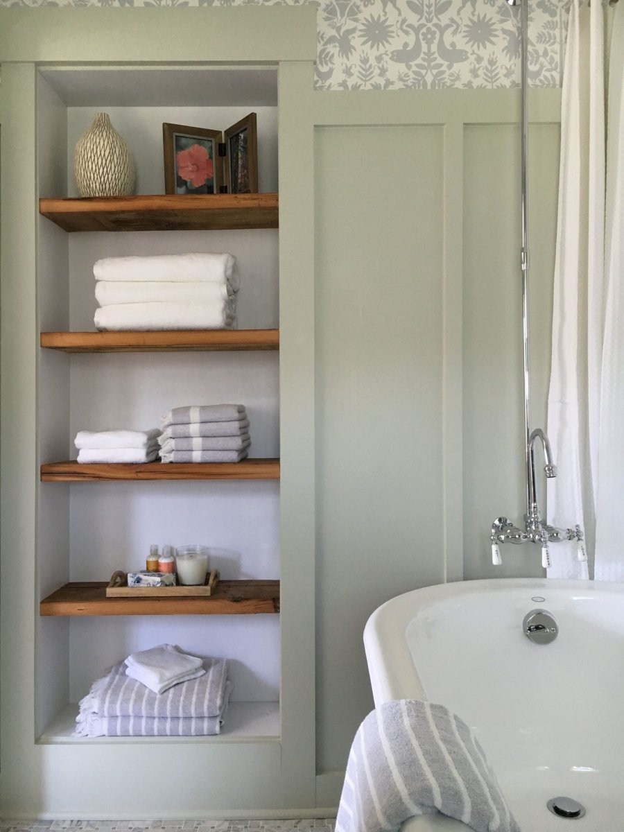Встроенные полки в ванной комнате