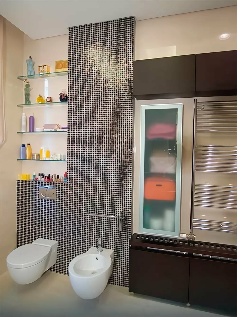 Встроенная полка в ванной с мозаикой