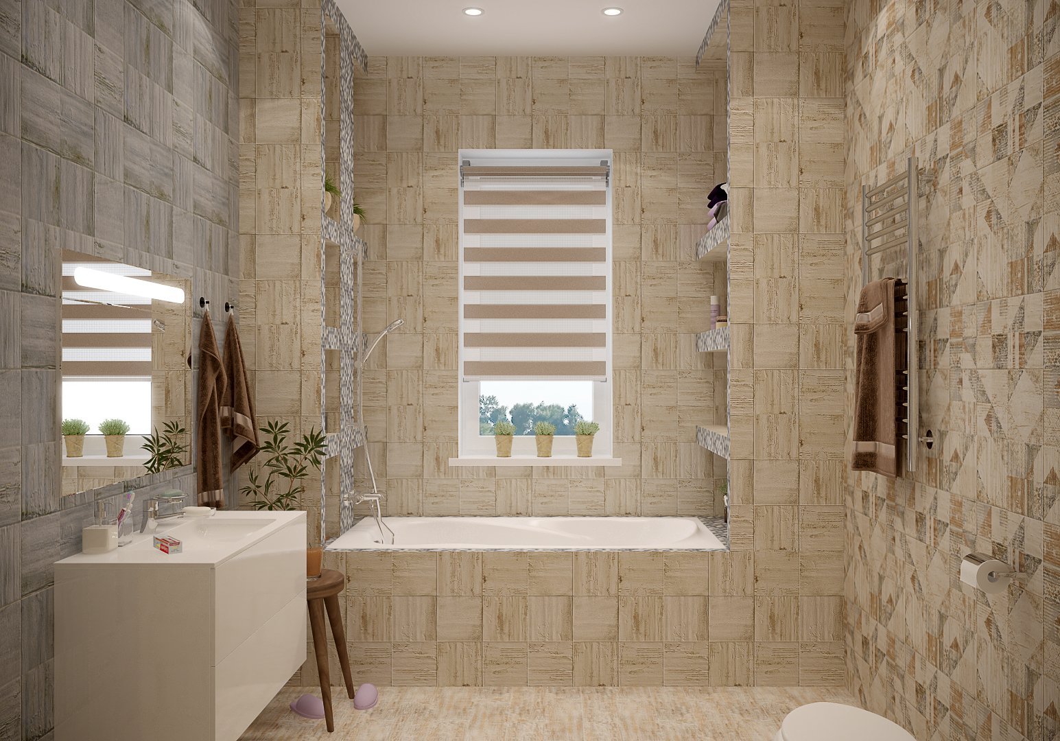 Зонирование в ванной комнате плиткой