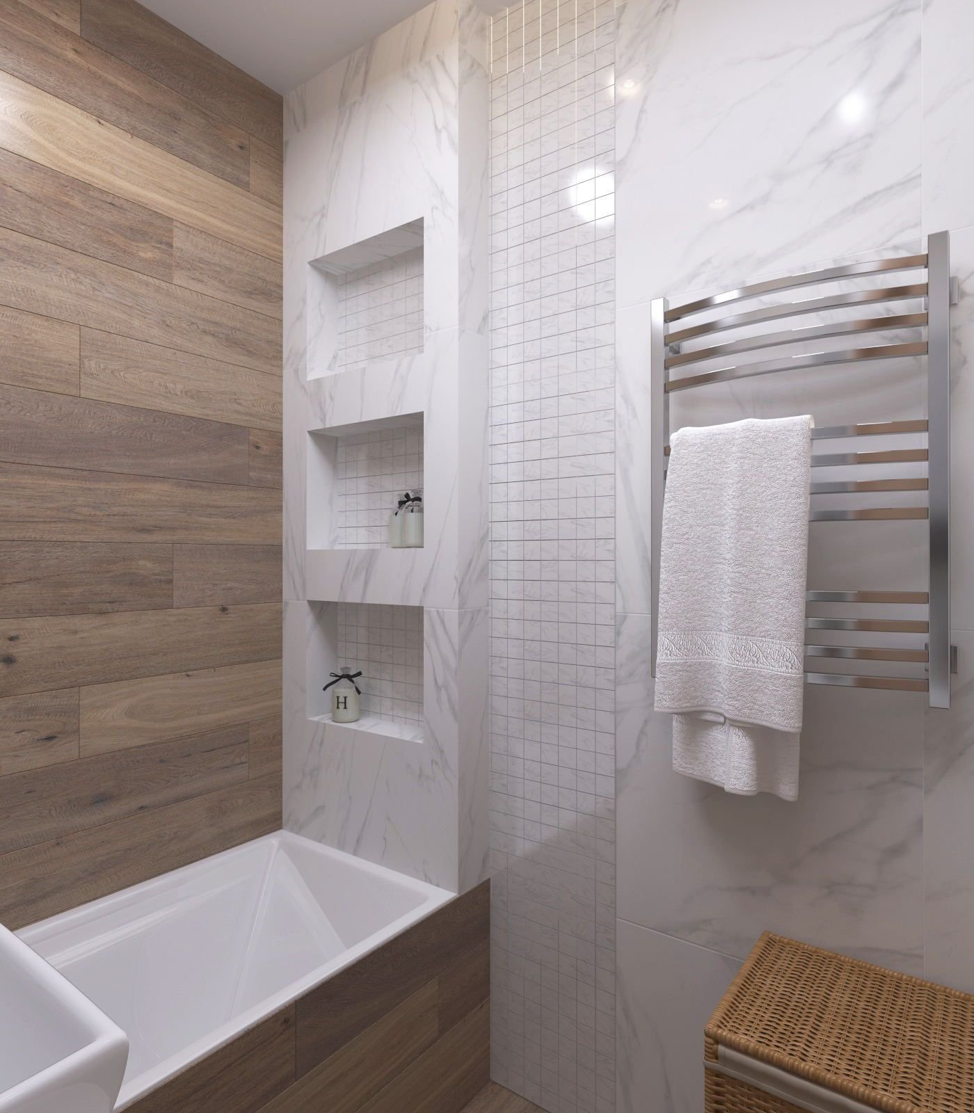 Ванна плитка под дерево и белая