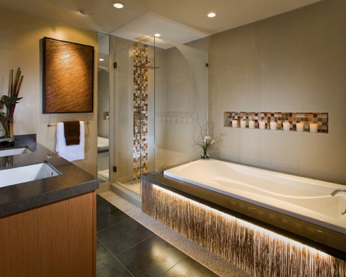 Ванная комната с подсветкой в нише