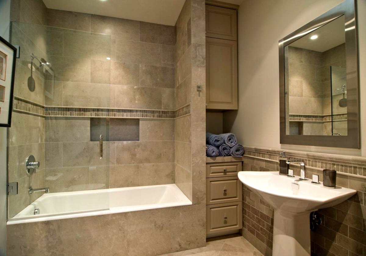 Серо бежевая ванная