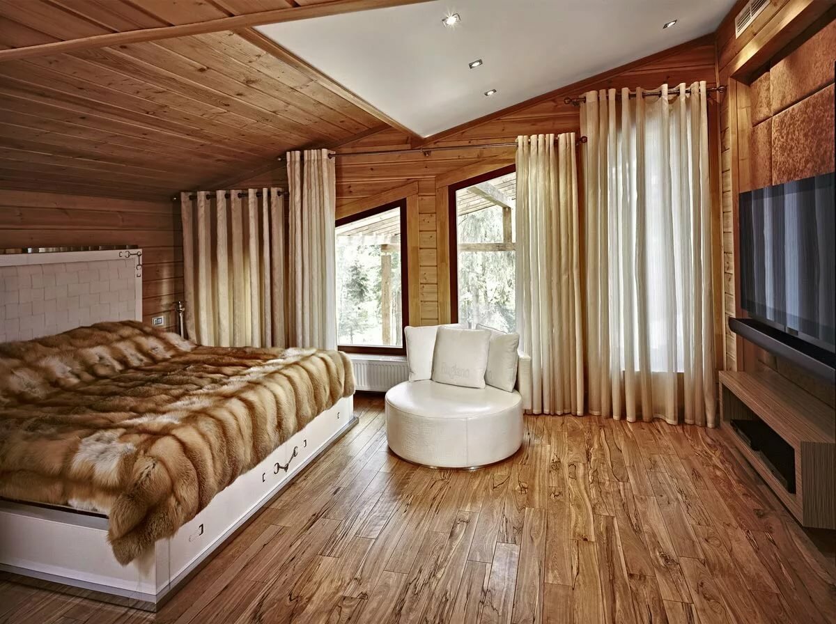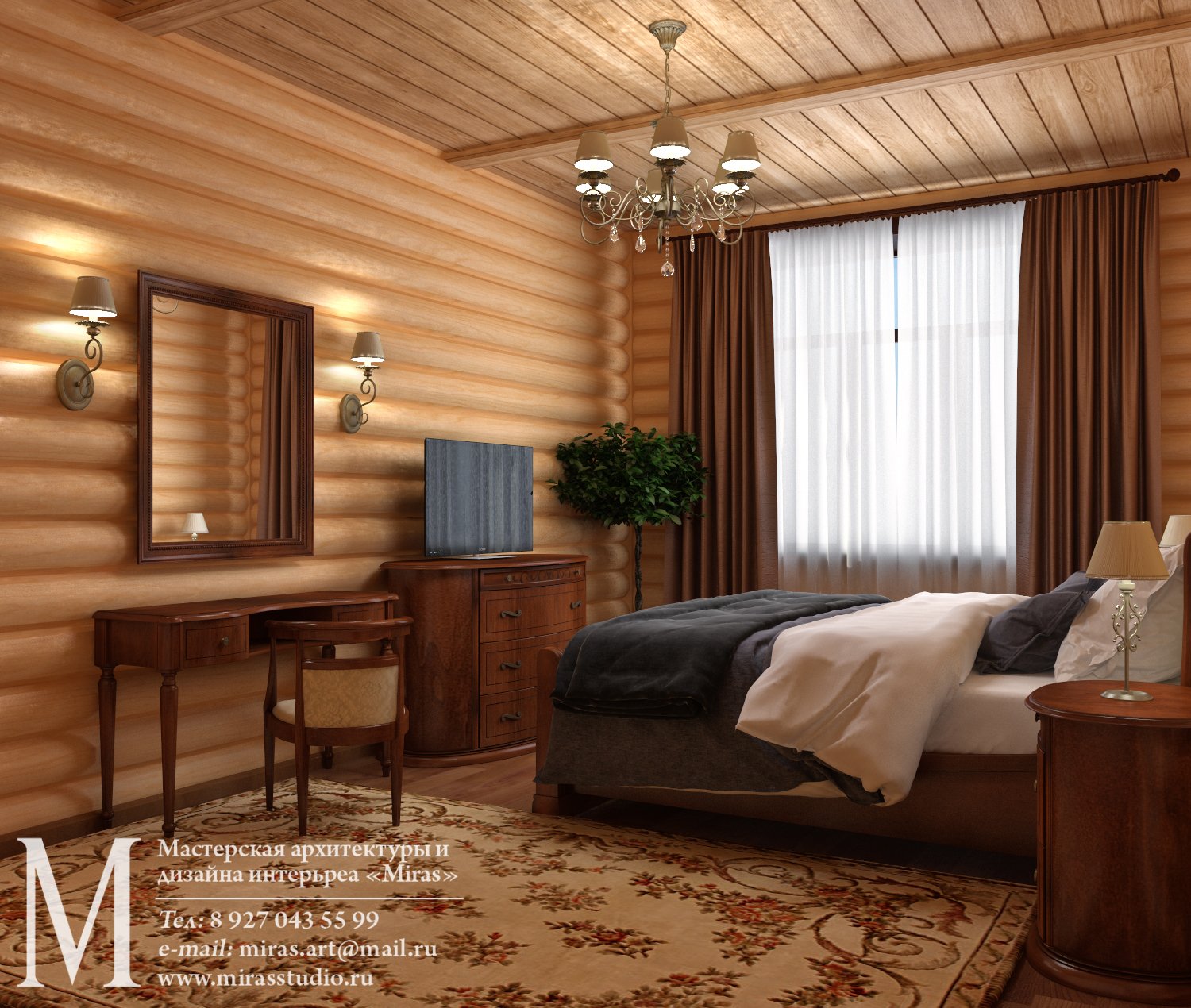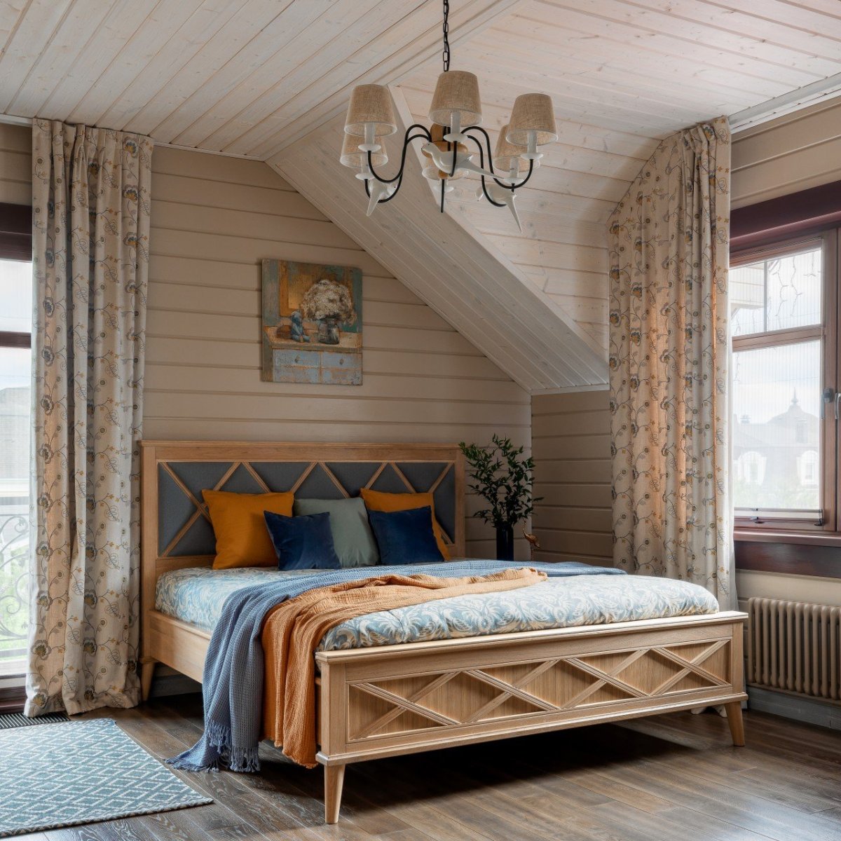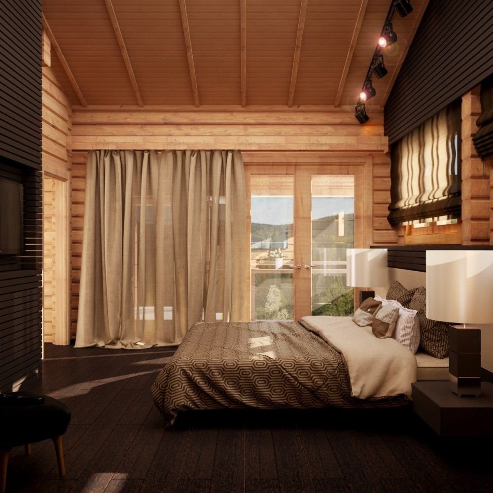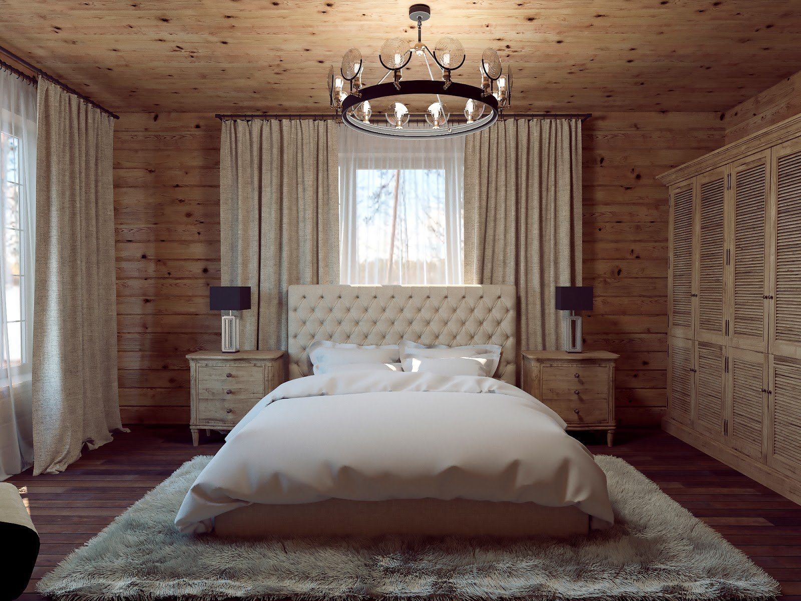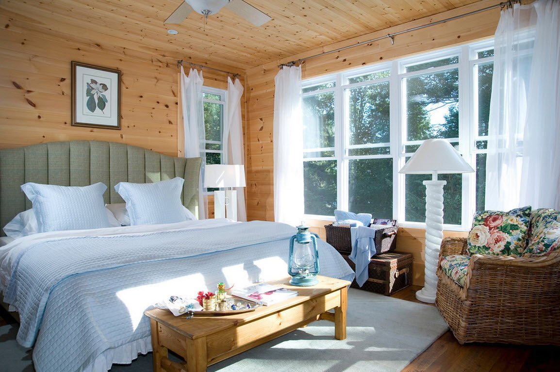 Интерьер спальни в бревенчатом доме в стиле Прованс