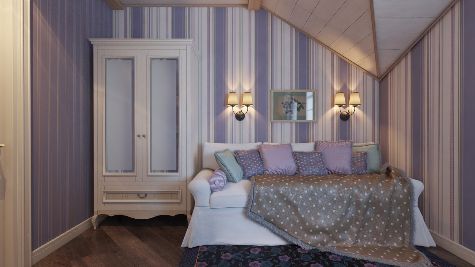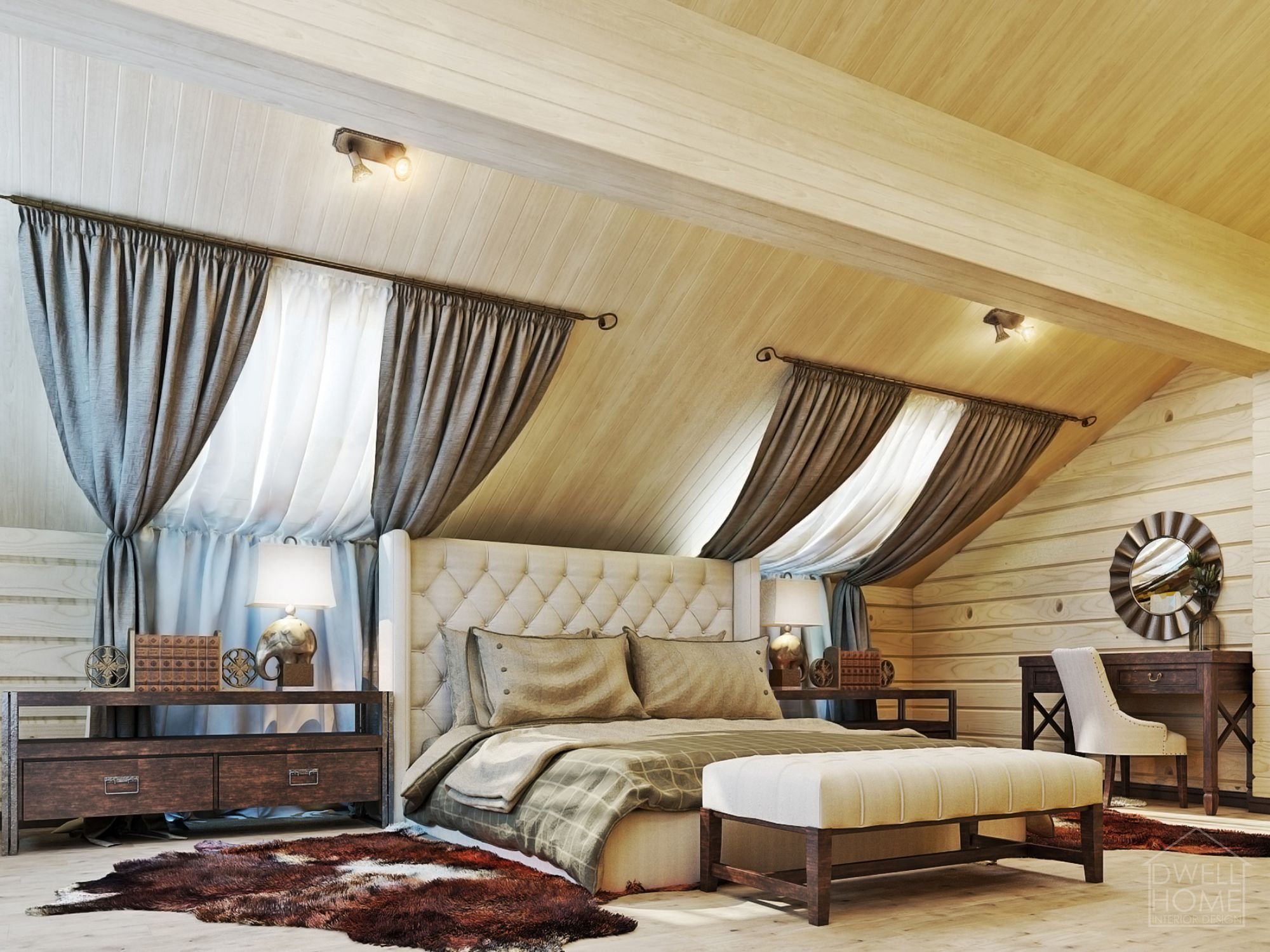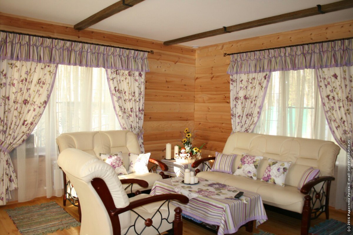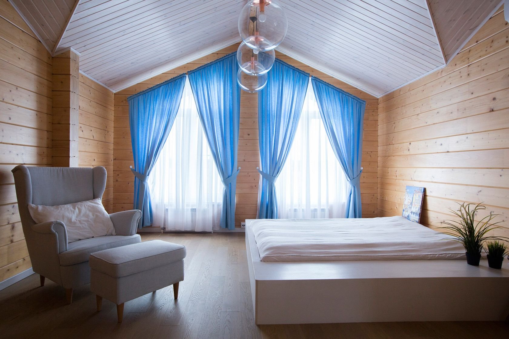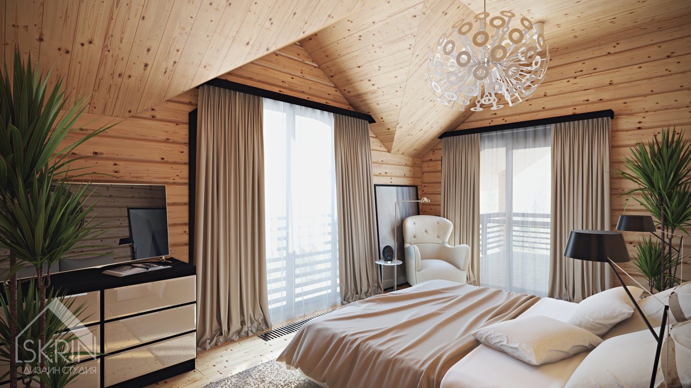 Интерьер спальни в бревенчатом доме в стиле Прованс