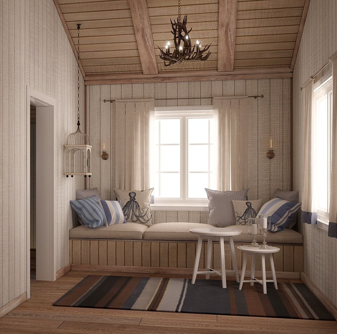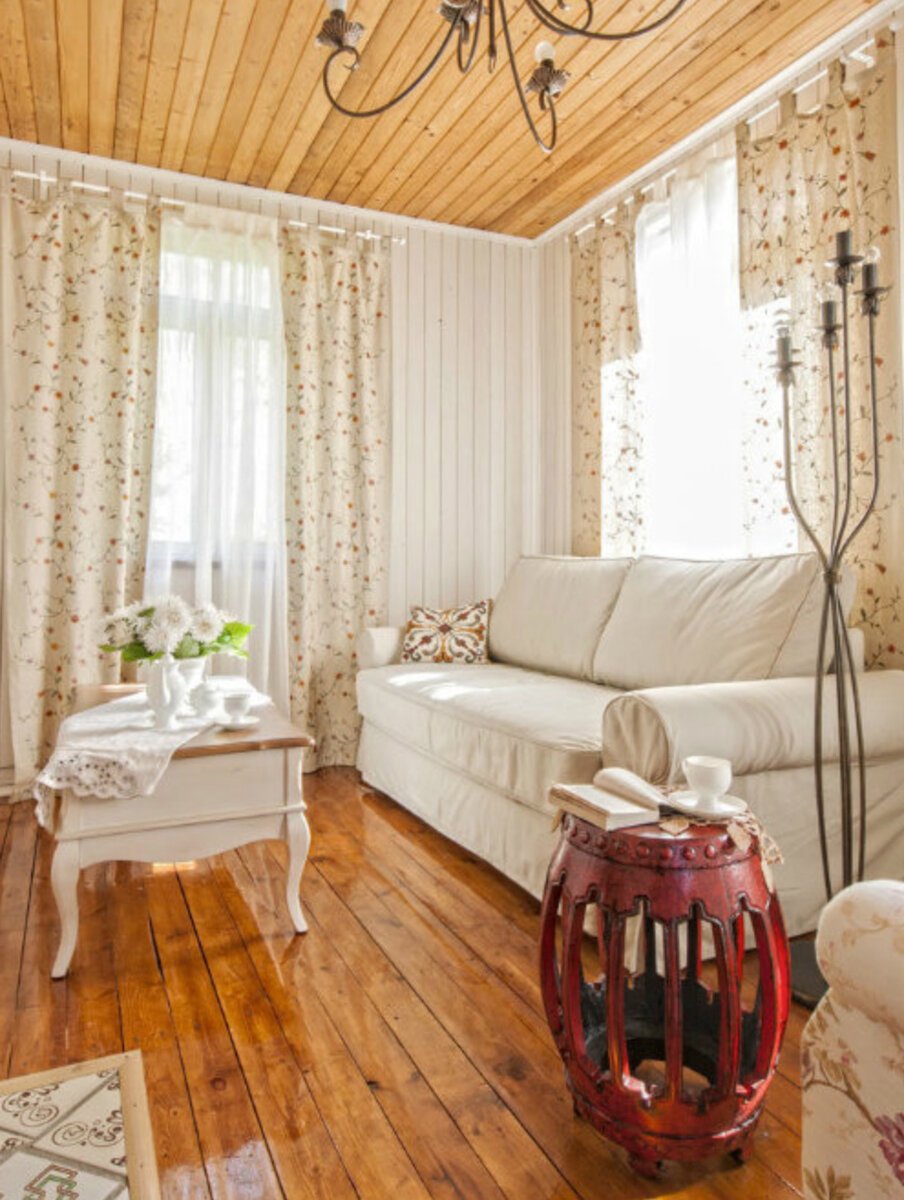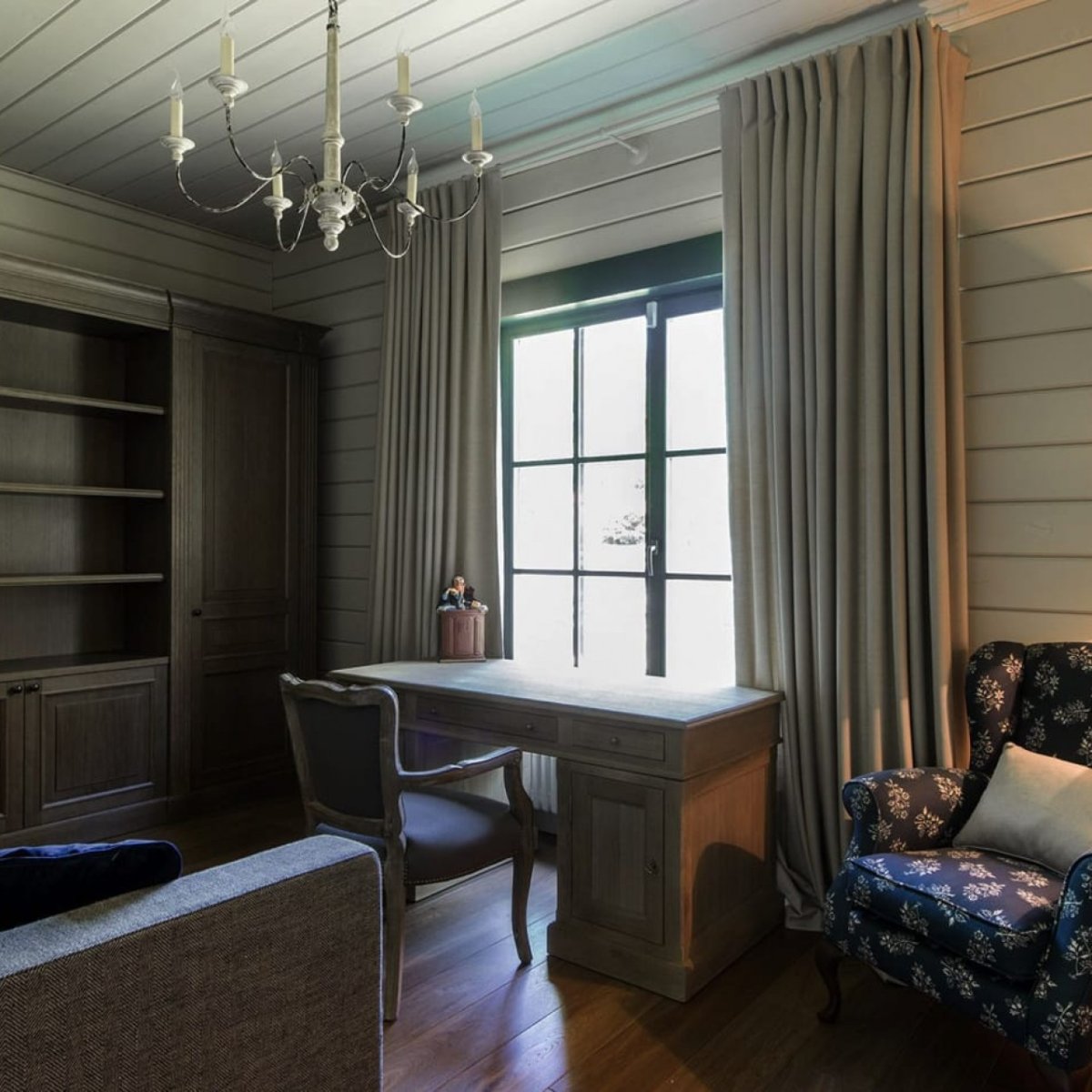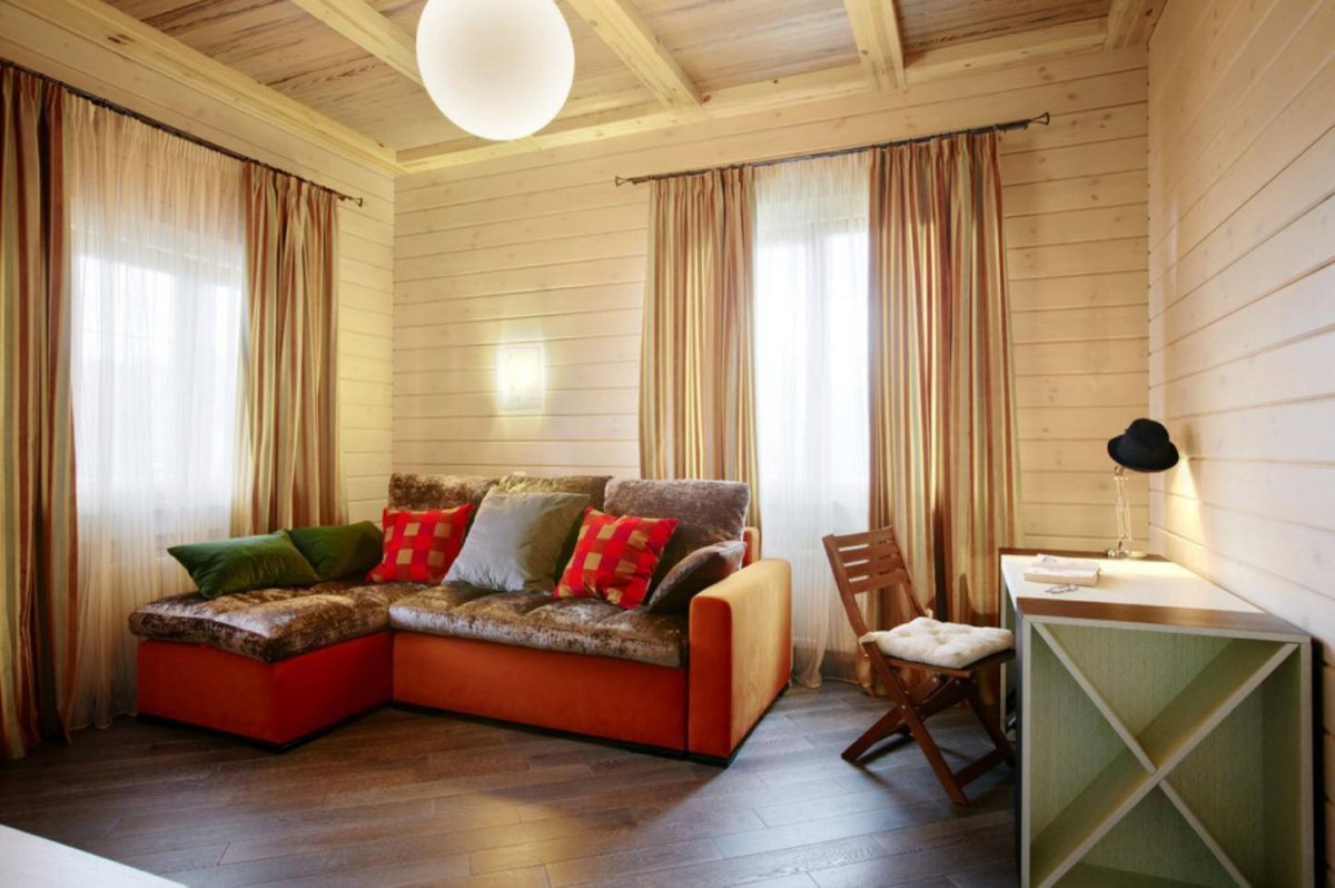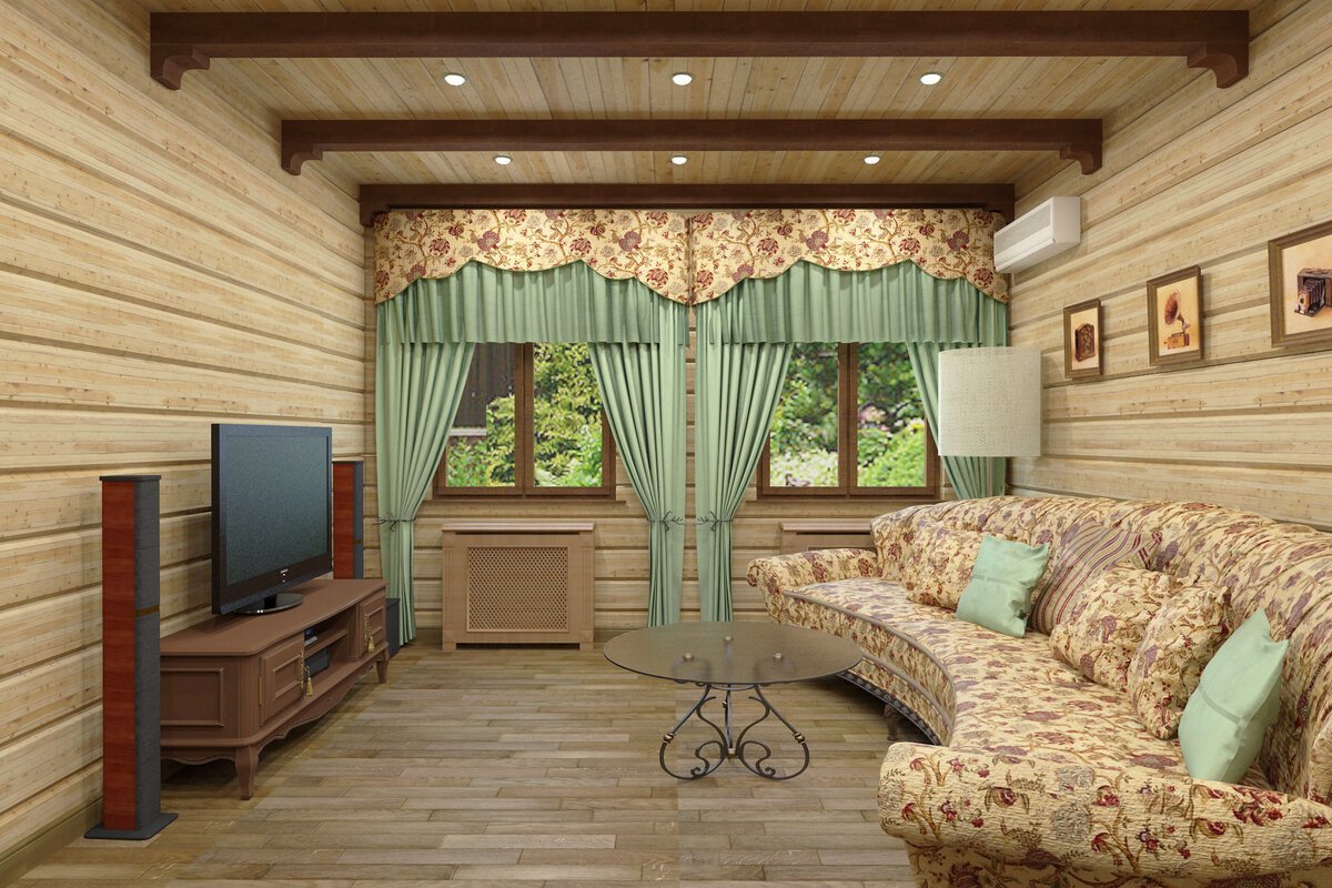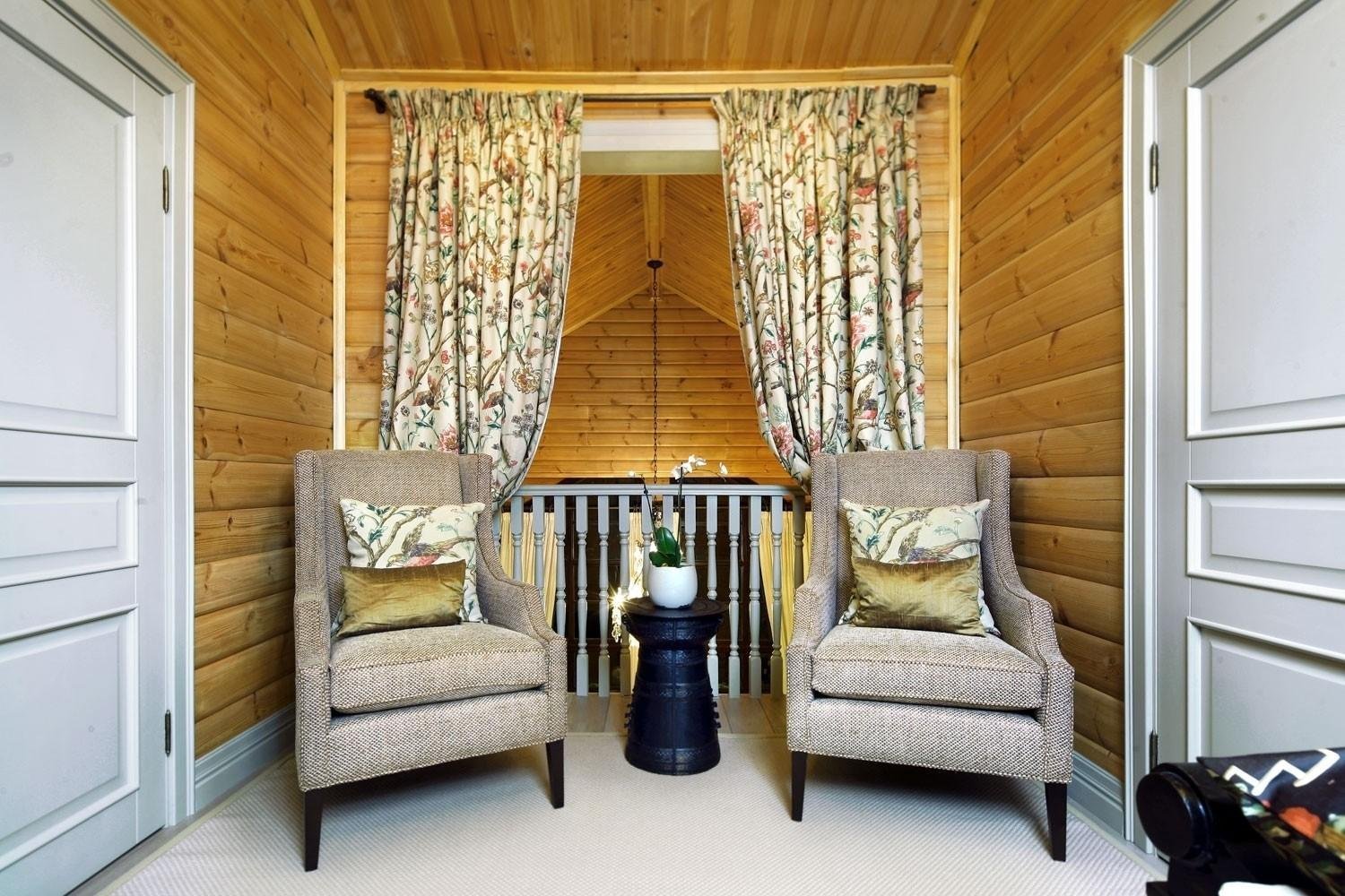 Интерьер спальни в бревенчатом доме в стиле Прованс