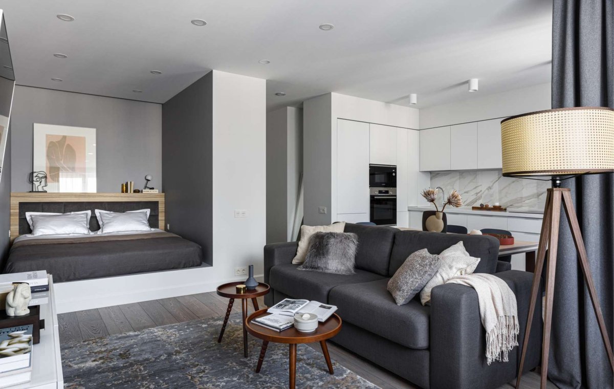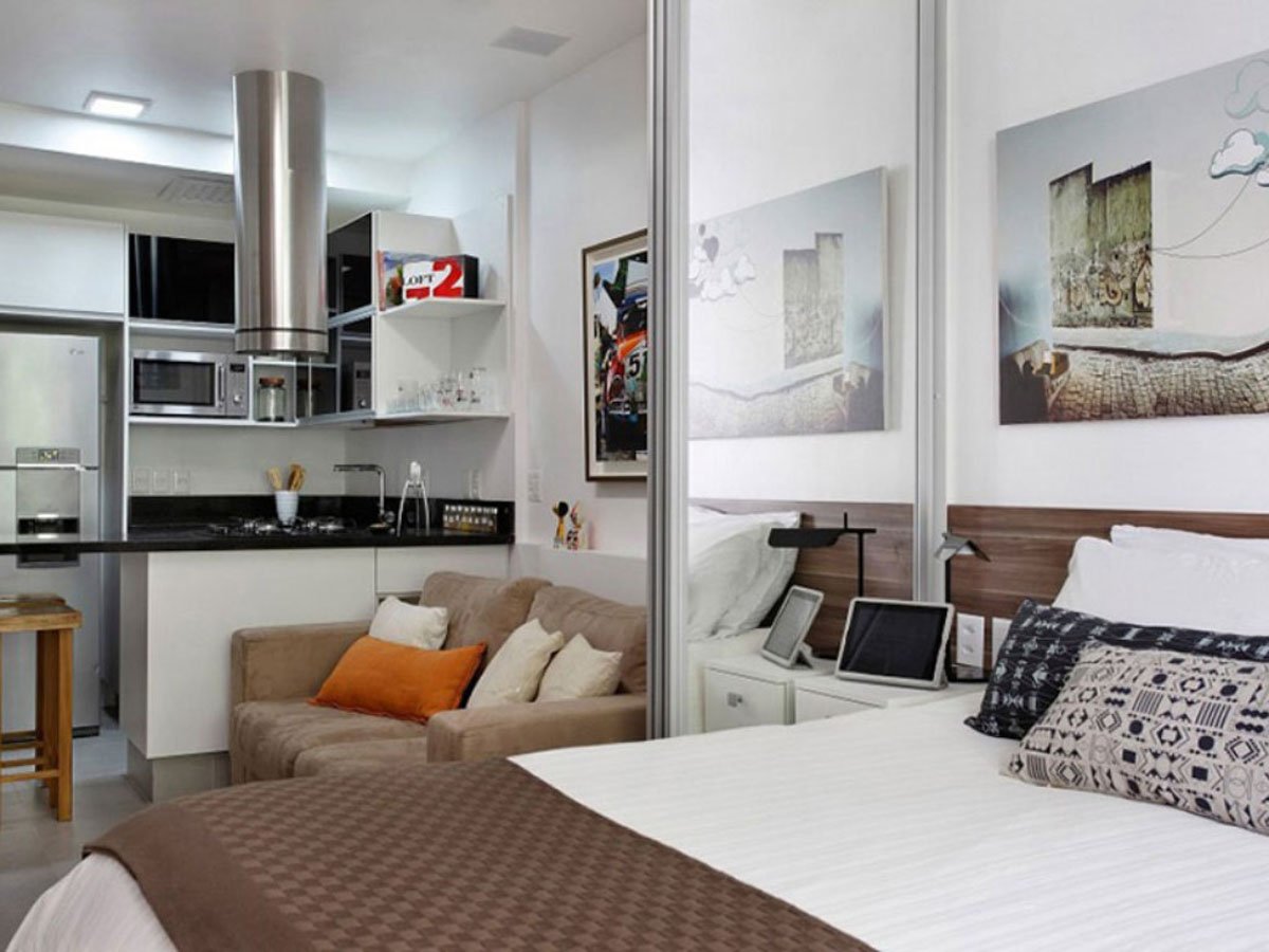 Интерьер спальня совмещенная с кухней