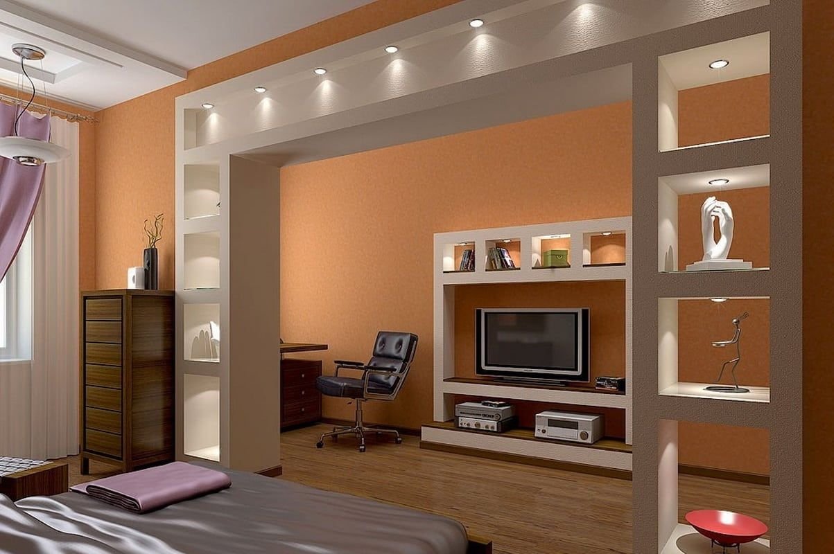 Гипсокартоновая перегородка для зонирования комнаты