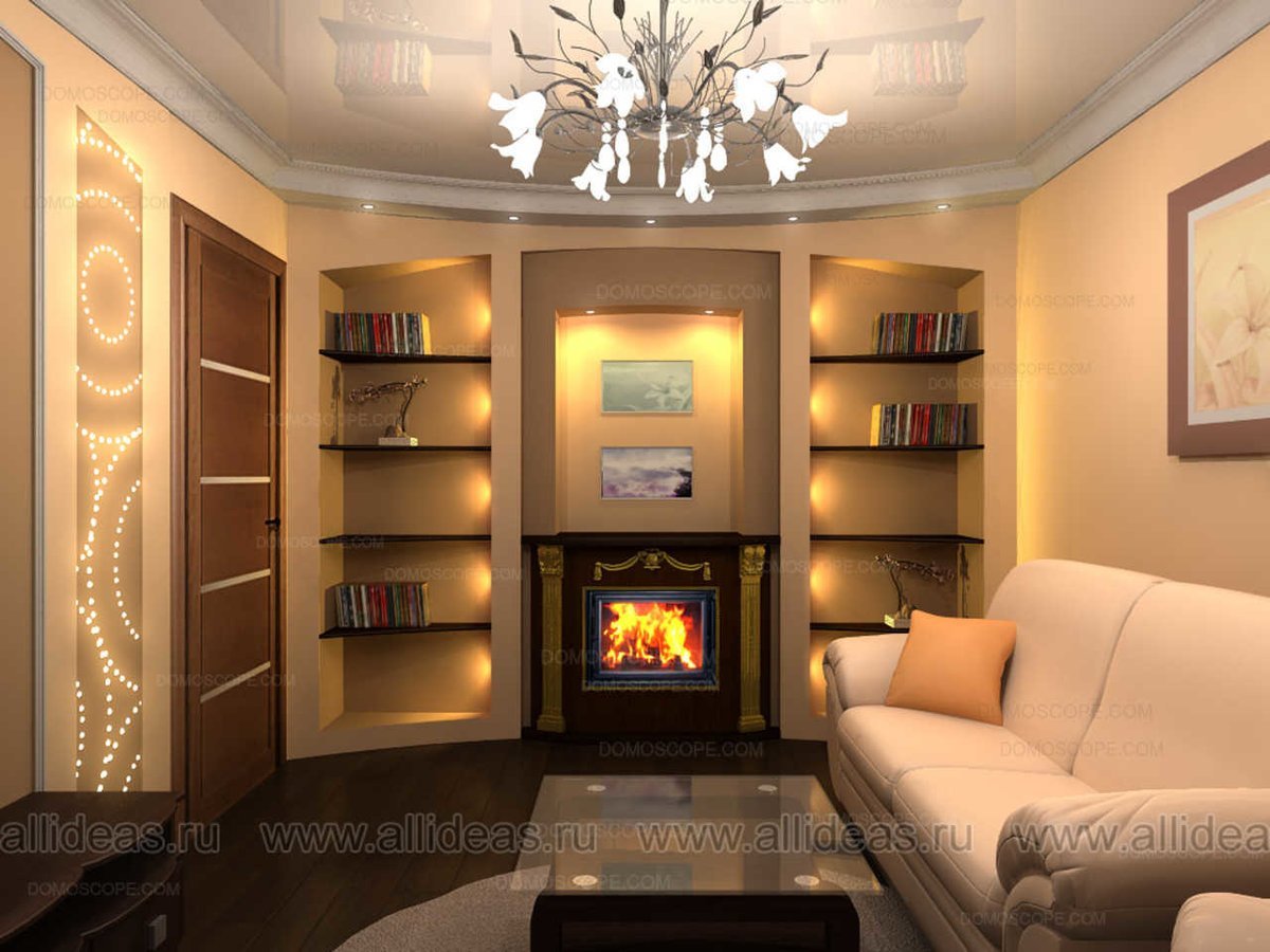 Камин в гостиной из гипсокартона