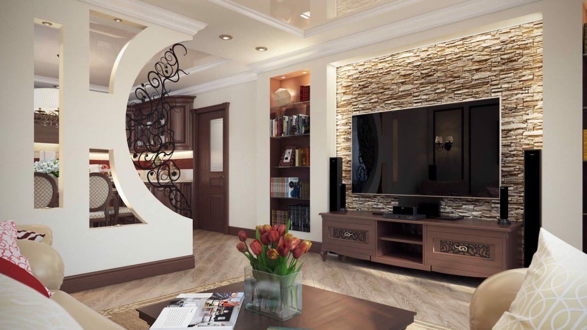 Стенка из гипсокартона в гостиной