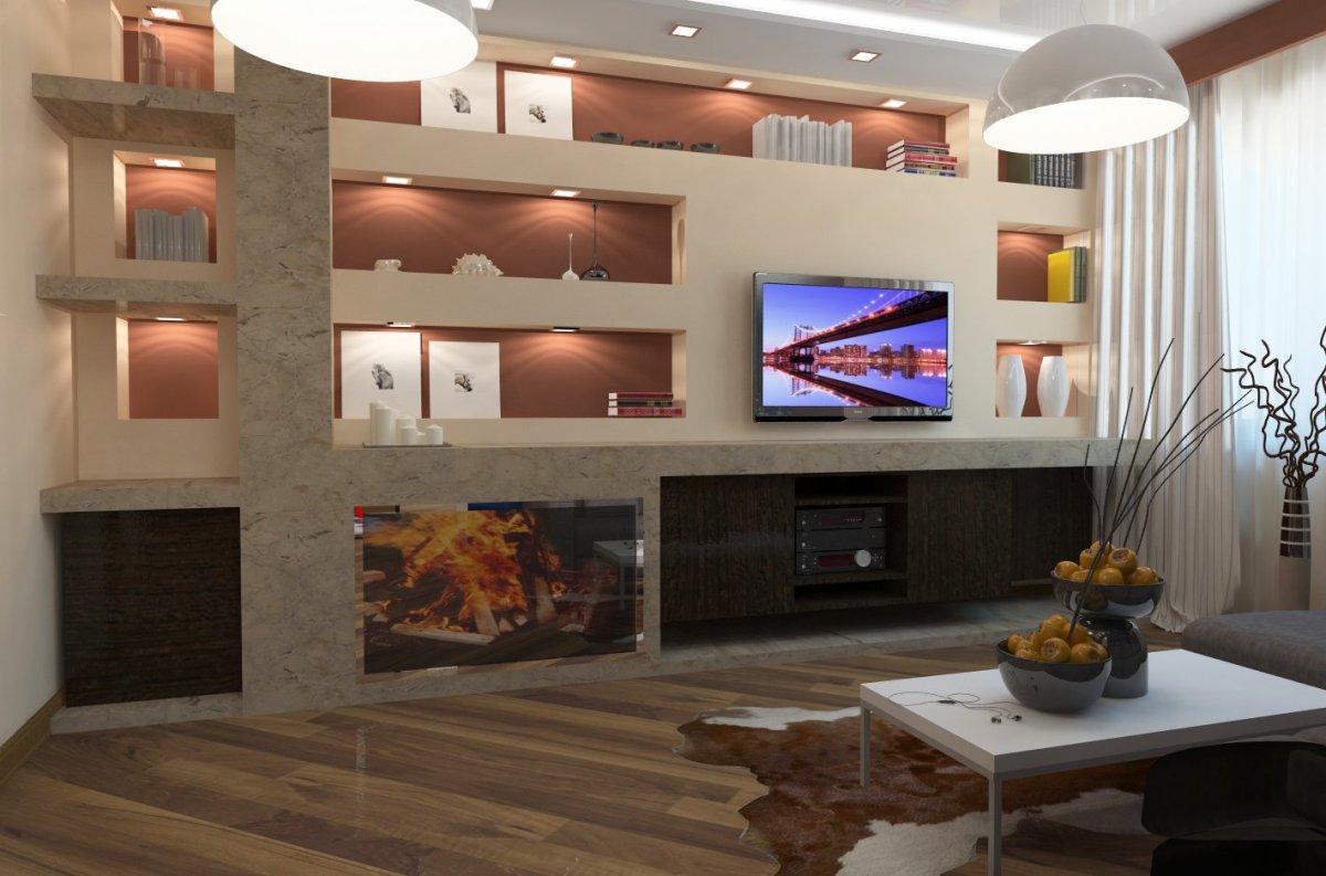 Гипсокартонные ниши в гостиной