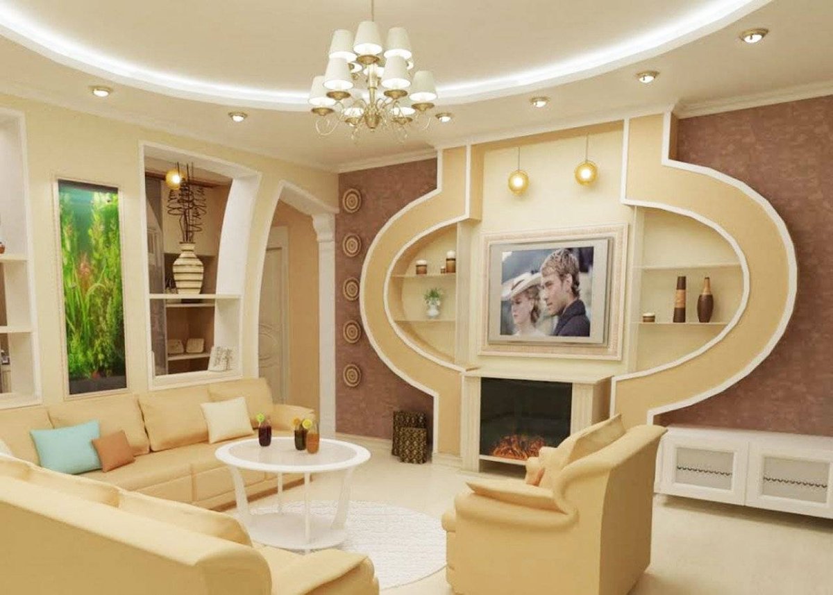 Гипсокартонные конструкции в гостиной