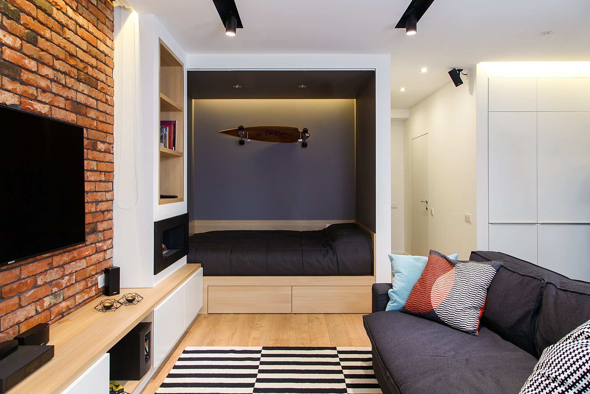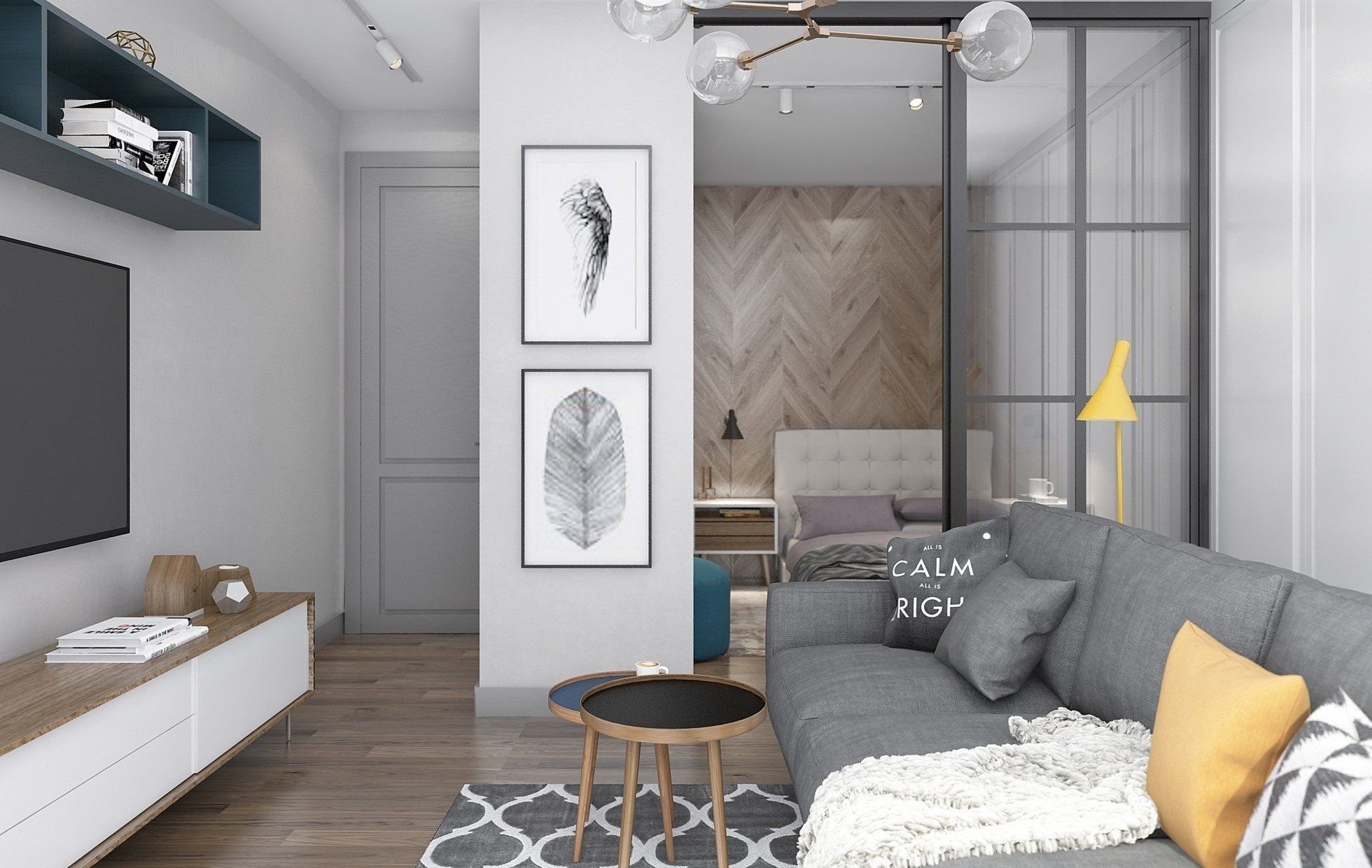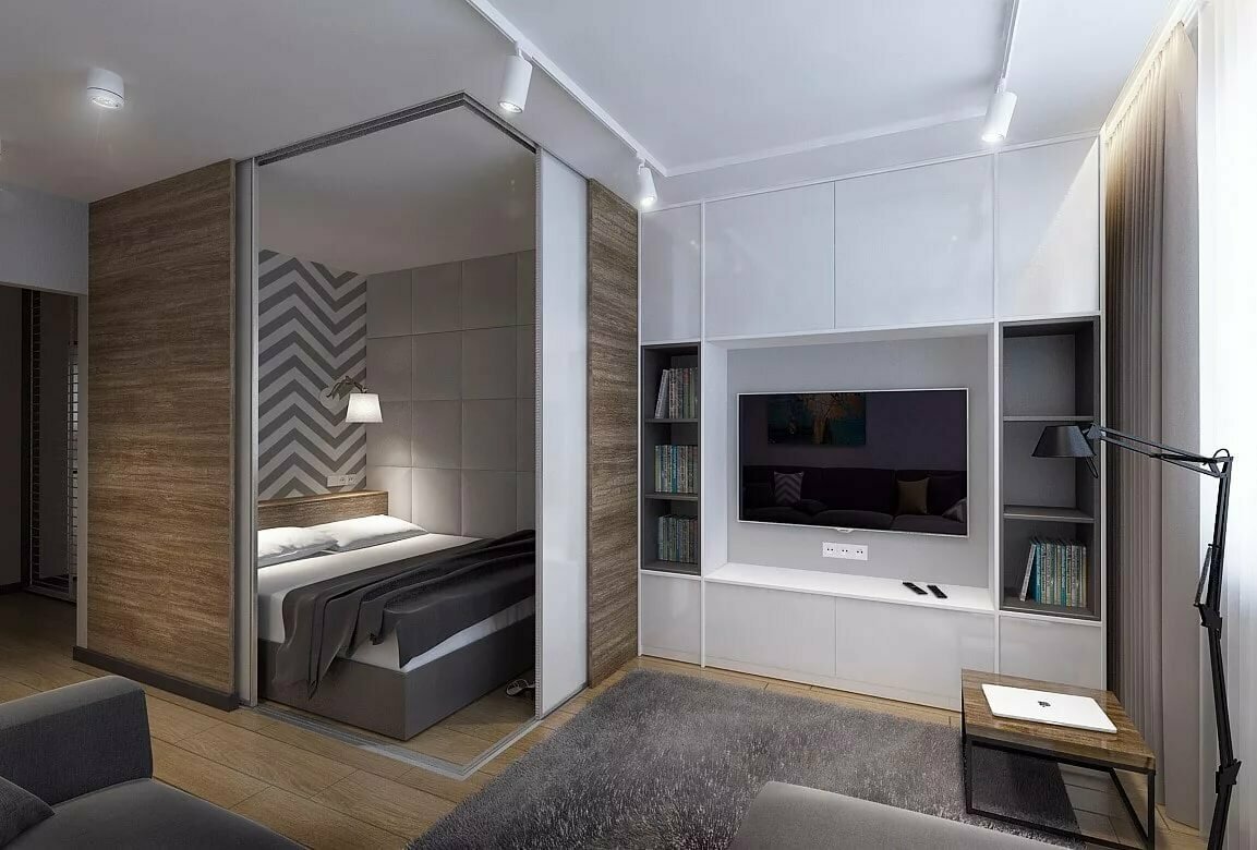 Спальня-гостиная с раздвижной перегородкой