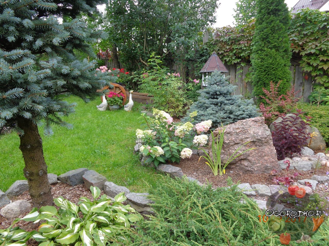 Композиция туя Смарагд , Горная сосна, гортензия, можжевельник