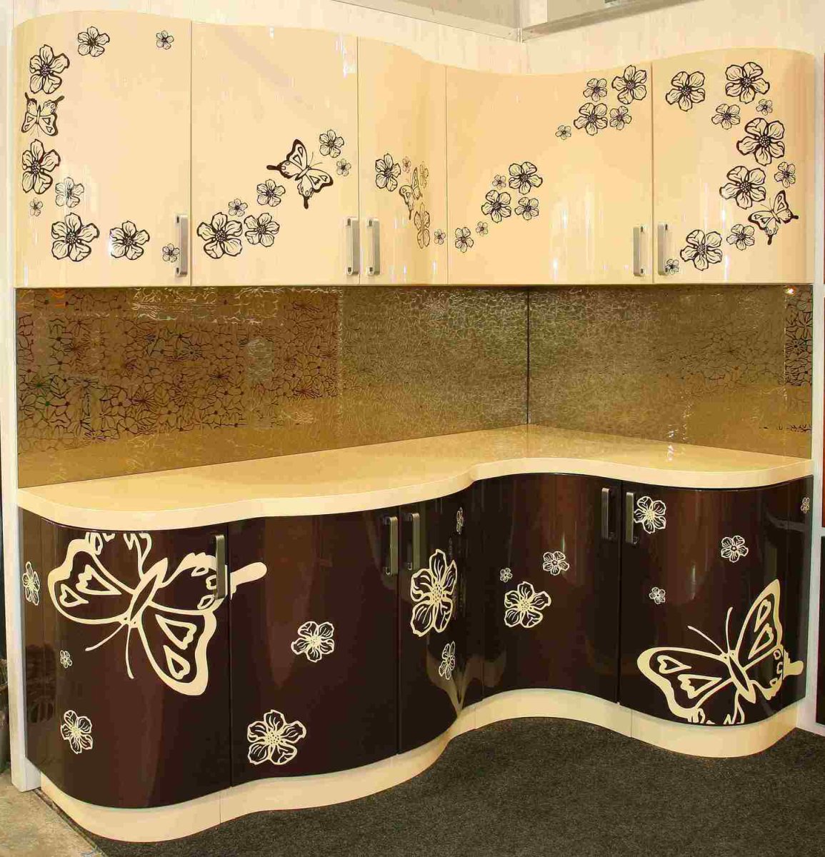 Угловые кухни с фотопечатью на фасадах