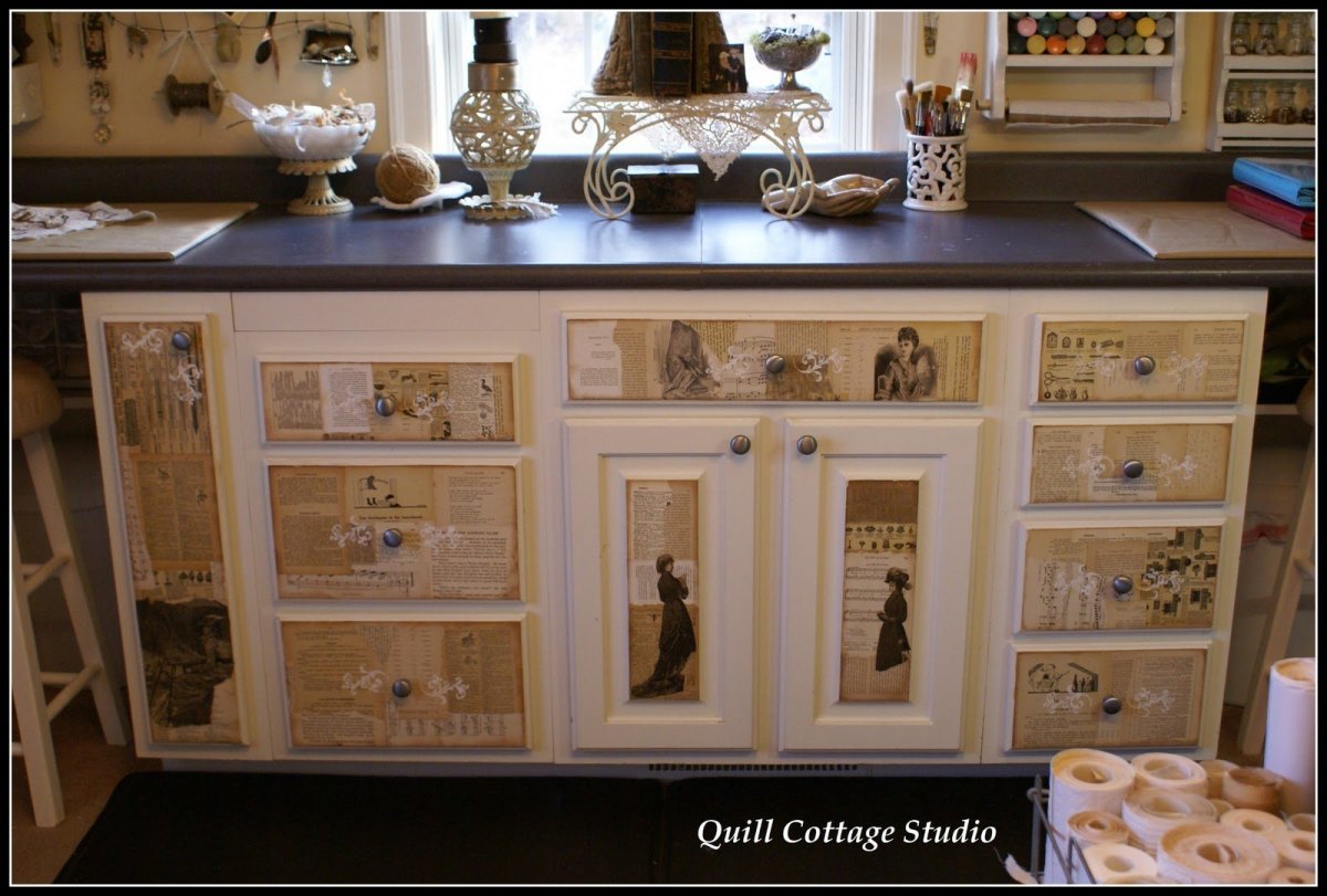 Декупаж кухонного гарнитура в стиле газеты