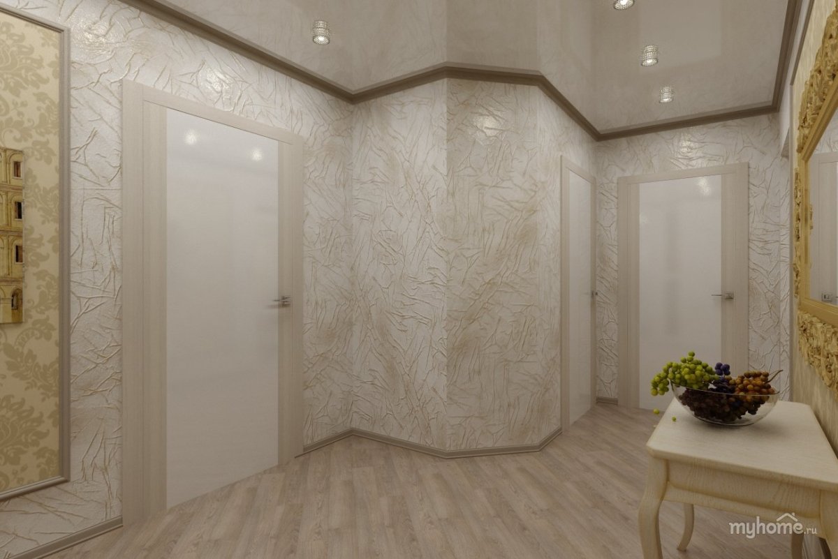 Обои под штукатурку в интерьере прихожей