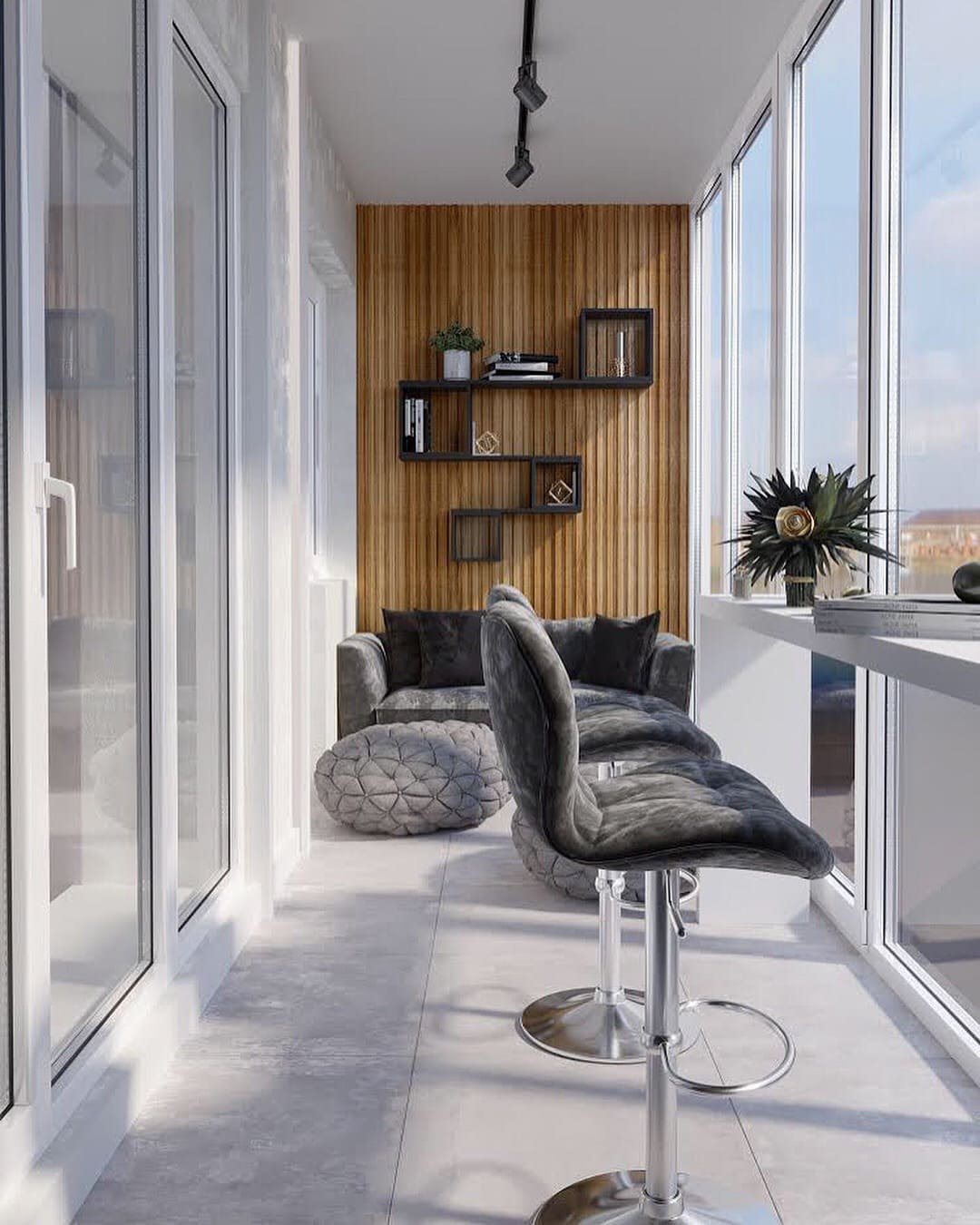 Лоджия в стиле лофт с панорамными окнами