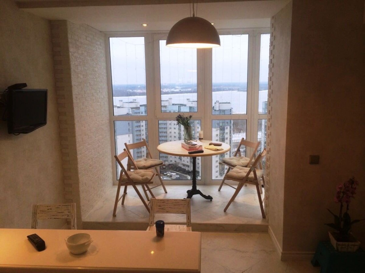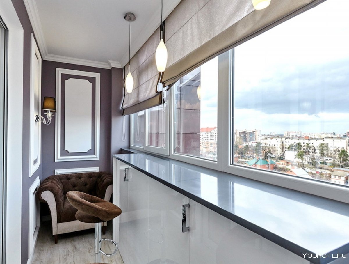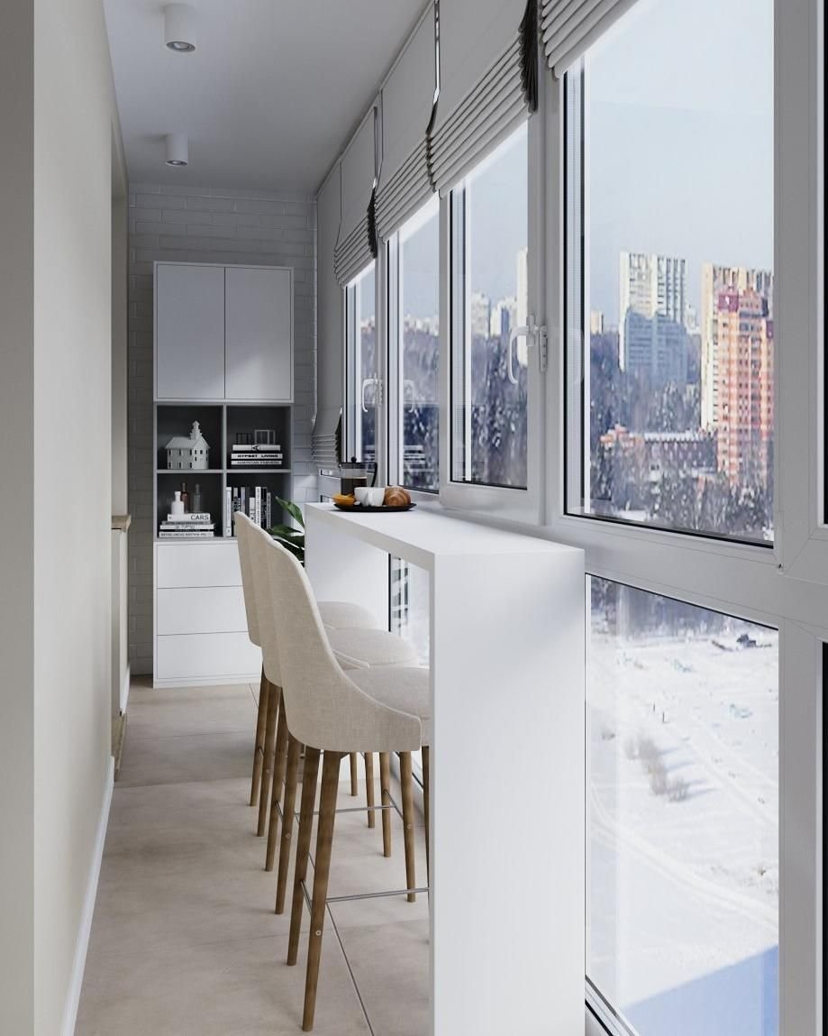 Панорамный балкон совмещенный с кухней
