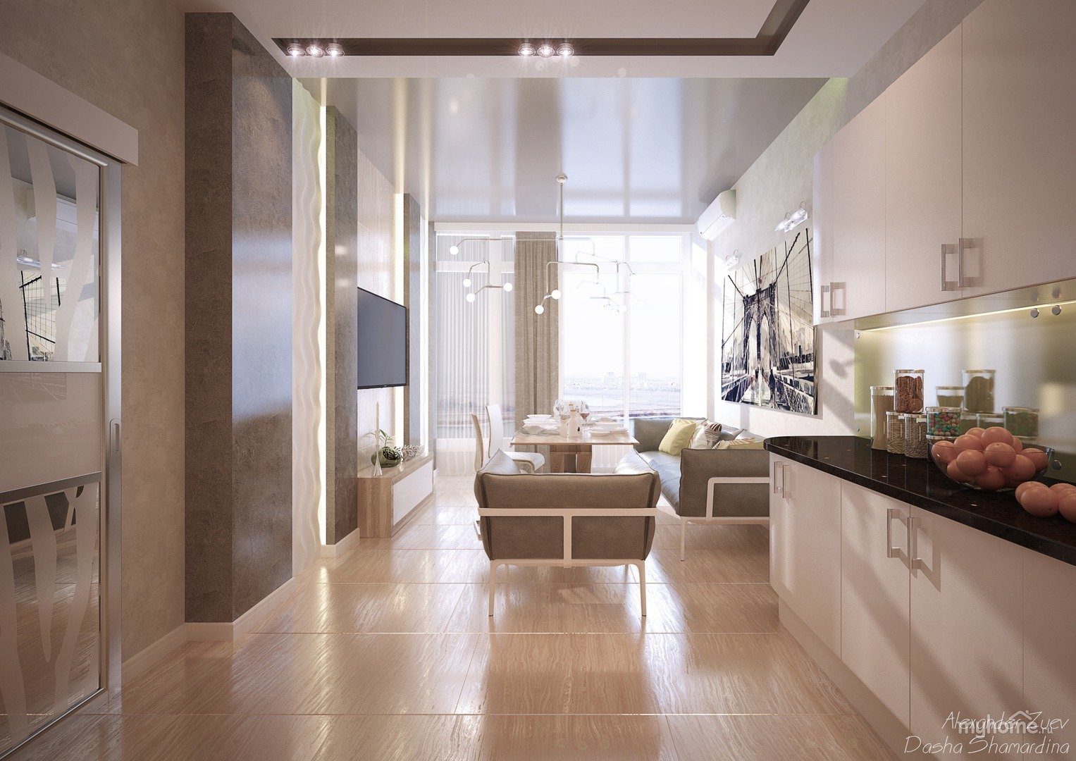Кухня гостиная с балконом