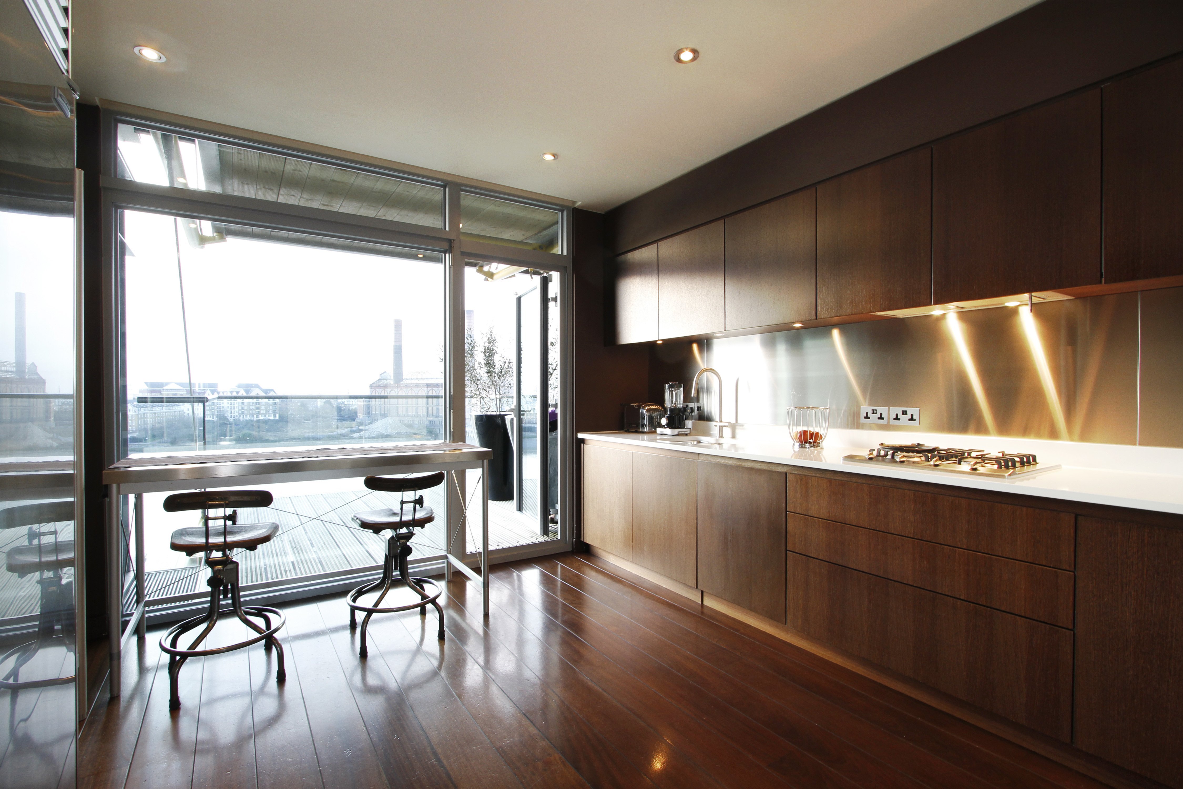 Узкая кухня с панорамным окном