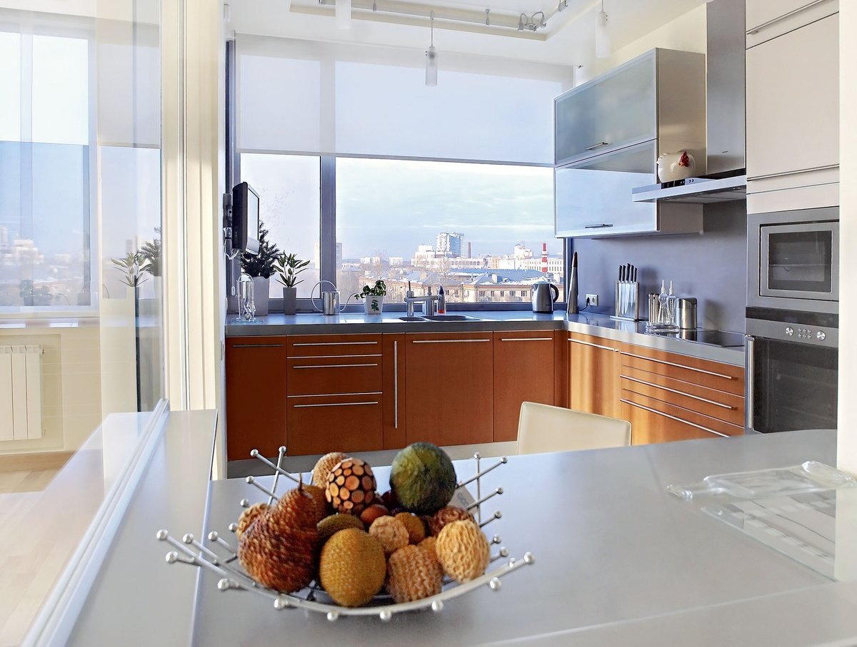 Кухня 15 кв м с панорамным окном