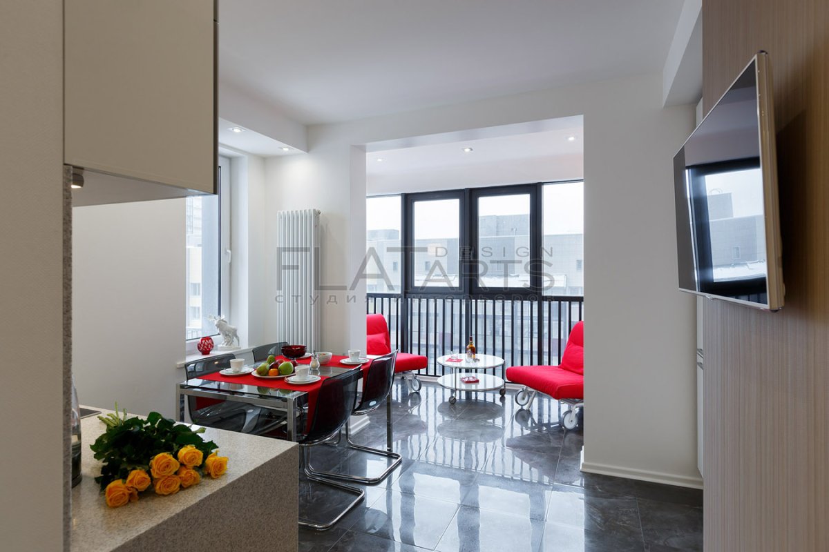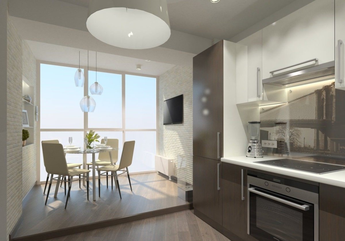 Кухня гостиная с панорамным балконом