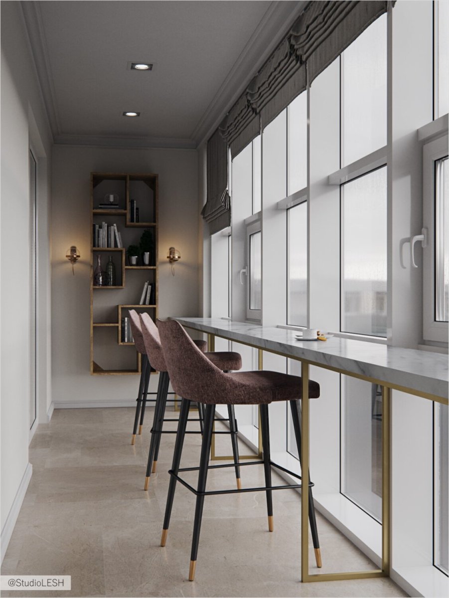 Барная стойка на балконе с панорамным остеклением